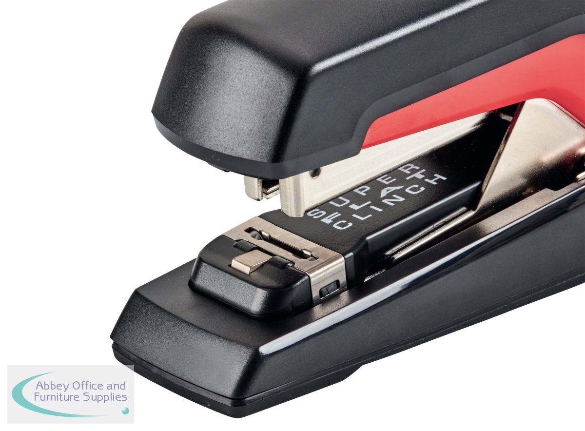 This revolutionary, high capacity stapler is equipped with patented Omnipress technology to take all the effort out of stapling. Whether used on a desk or in the hand, the stapler can be pressed anywhere for easy and accurate stapling. Featuring flat clinch technology, it reduces paper stacks by 40%, providing more space in binders and letter trays. Designed to staple up to 60 sheets, the stapler is compatible with Rexel Omnipress 60 staples and is supplied in Black/Red.