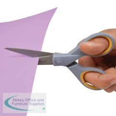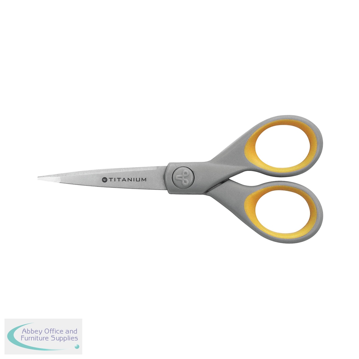 These Titanium Nitride bonded soft grip scissors are distinguished by their titanium nitride coating which resists the stickiness of tape and glue. The stainless steel blades guarantee a precise cut and the ergonomic shaped soft grip handles with soft inner rings offer comfortable and precise cutting. This pack contains one pair of 130mm scissors.