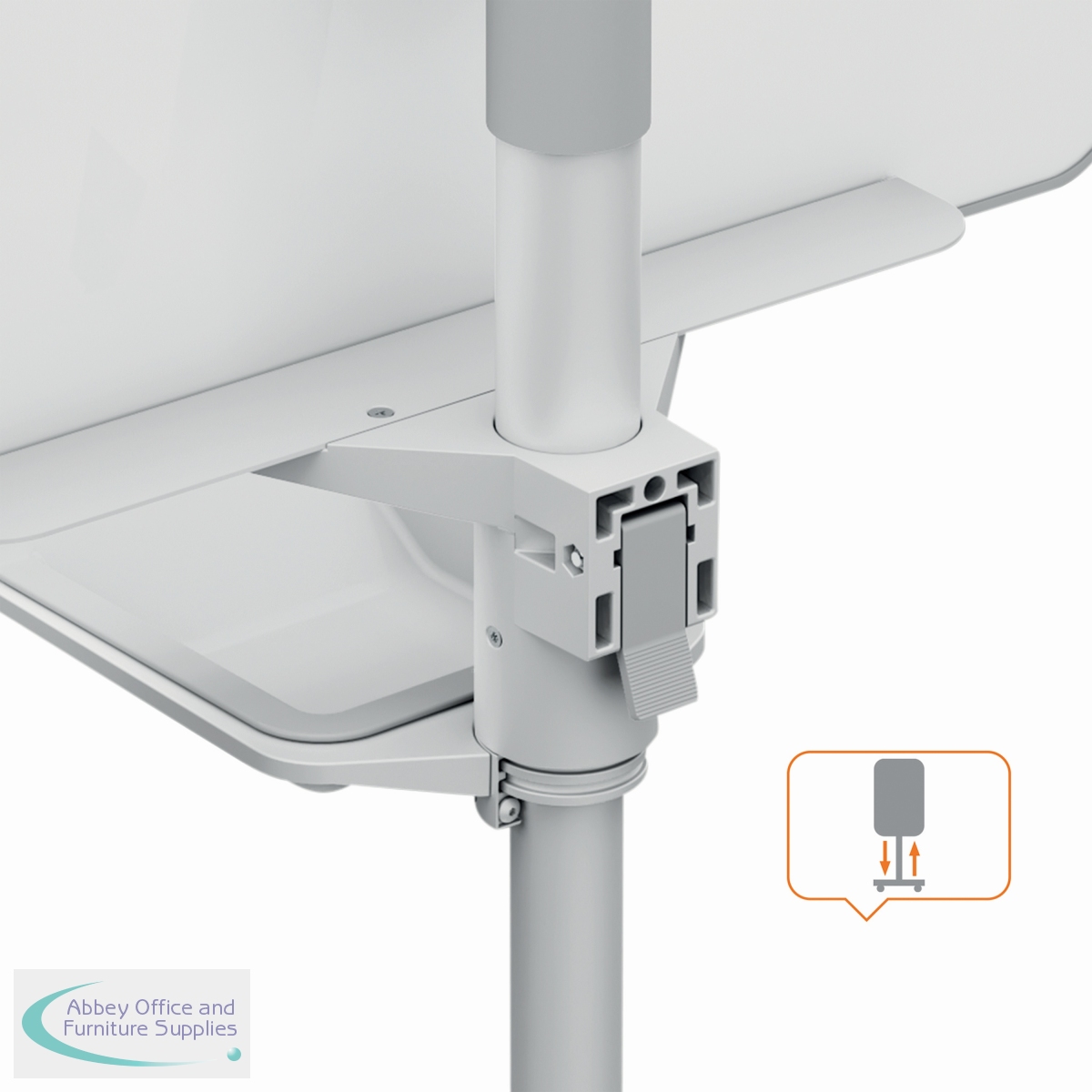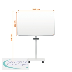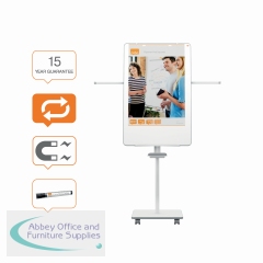 The Move & Meet Mobile Flipchart easel is the ideal mobile collaboration tool which is easily configured. The easel has a removable, double-sided, magnetic whiteboard with a contemporary, curved corner design. It can be used on a desktop or mounted on the easel stand in a portrait or landscape format. Standing or sitting with simple height adjustment, lockable castors and extending arms, this easel creates an extended display area for collaboration. Supplied with a whiteboard pen and integrated removable whiteboard accessory tray, the whiteboard measures 680 x 1040mm.
