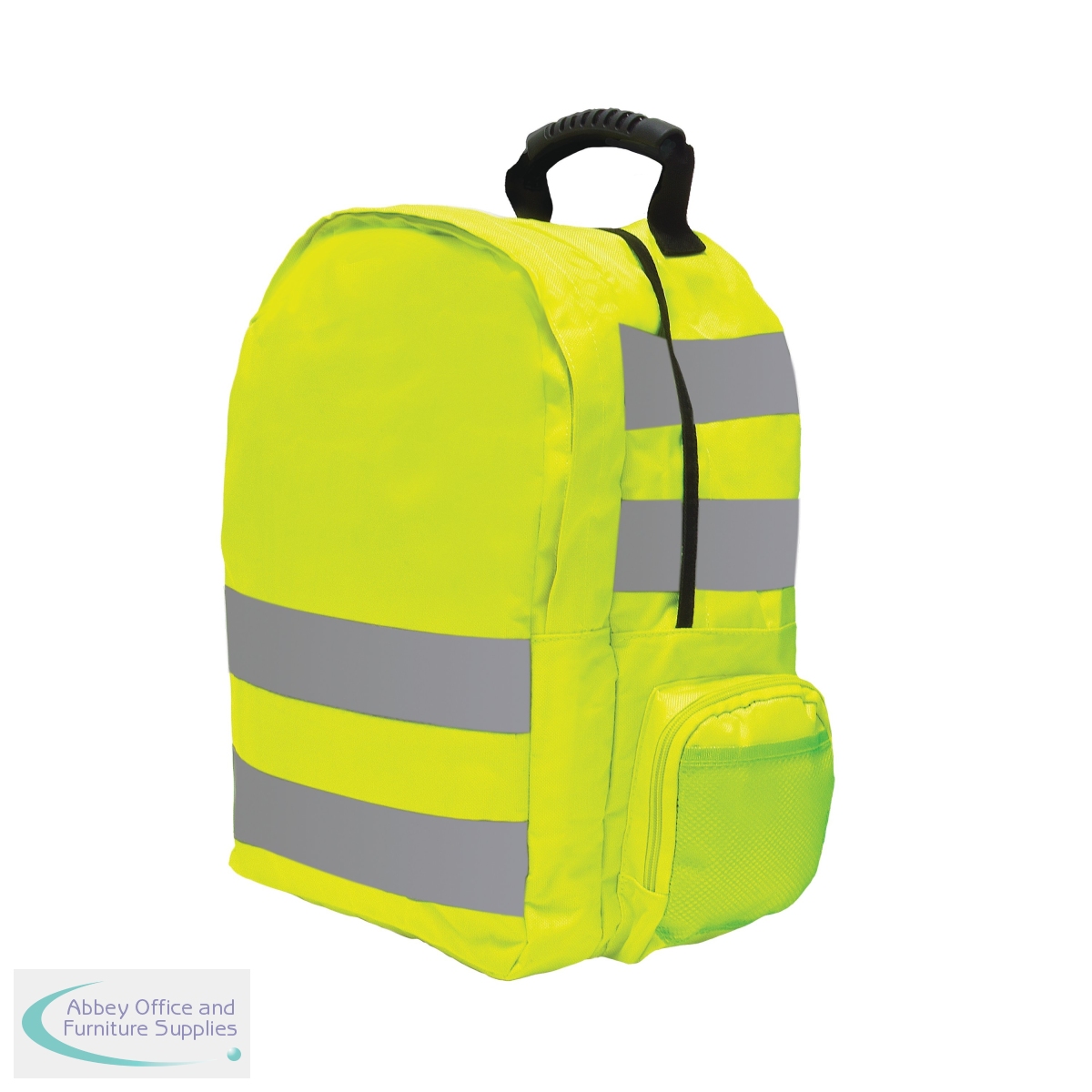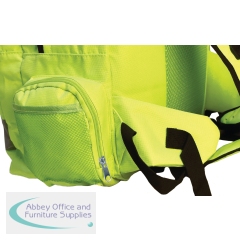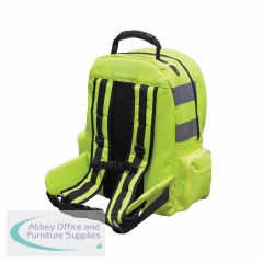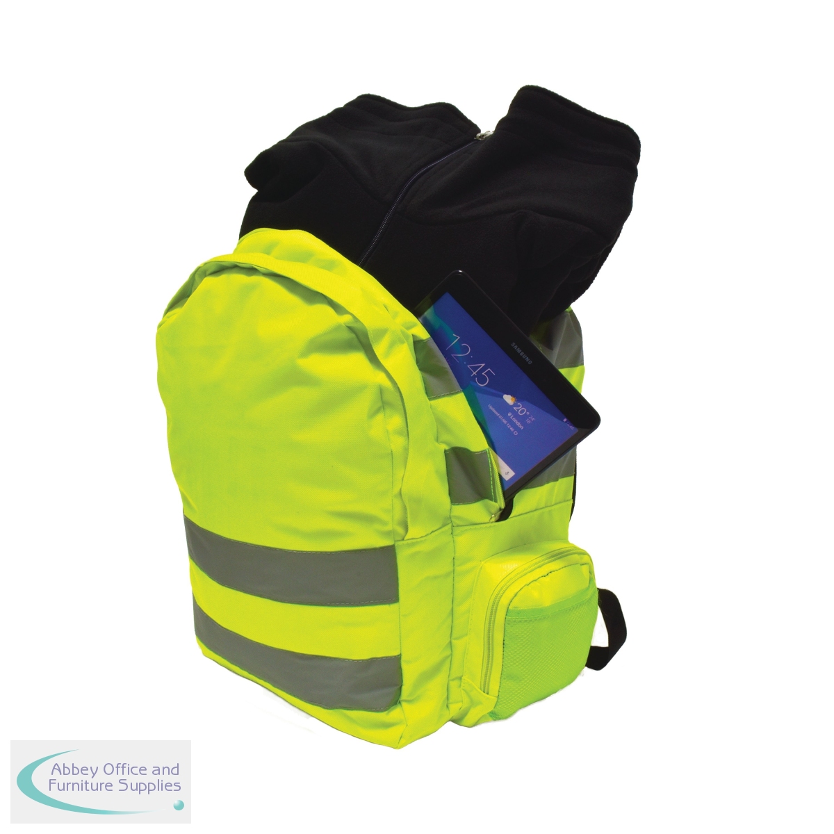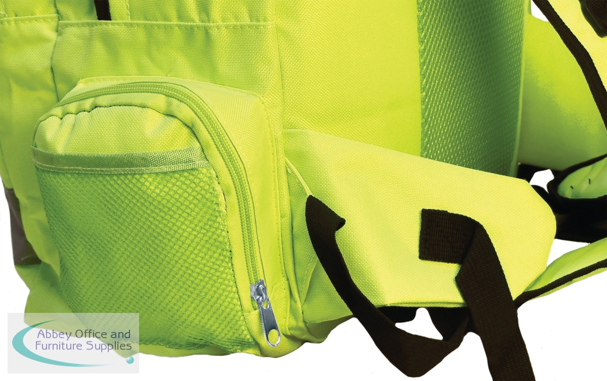 The Monolith Laptop Backpack is a bright yellow high visibility backpack with additional reflective strips on main panel and sides for all round visibility. The bag has a large main compartment with padded 15.6 inch laptop pocket and additional pockets for belongings. Large front pockets with organiser section and additional zipped mesh pockets to the sides. Transparent name card holder for easy identification. The bag has padded shoulder straps, chest belt and padded waist belt for added comfort. Material conforms to EN ISO2047/DIN.