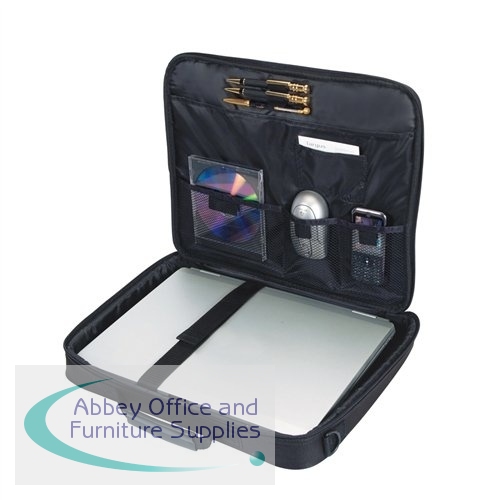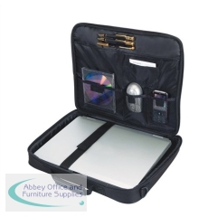 Designed with simplicity the Targus 15.6 Inch Notebook Briefcase is an ideal case to carry notebooks with screens up to 15.6 inches. Including a workstation, there is storage for all those essential mobile accessories and a padded lining to protect your laptop; this is an ideal cost-effective case. Features a riveted handle and removable shoulder strap with cushioned pad for improved comfort when on the move. The briefcase has a padded notebook compartment for screens and an internal workstation provides organisation for all those essential mobile accessories. Large front pocket for storage of miscellaneous items and papers, while the rear slip pocket gives quick access to documents on the move.