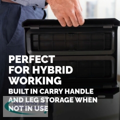 The Fellowes Breyta Monitor Stand features 3 height settings for ergonomic viewing. The stand has a device channel with charging access while the legs clip in underneath the platform for easy storage. The stand is easy to set up, adjust and store away ideal for hybrid working.