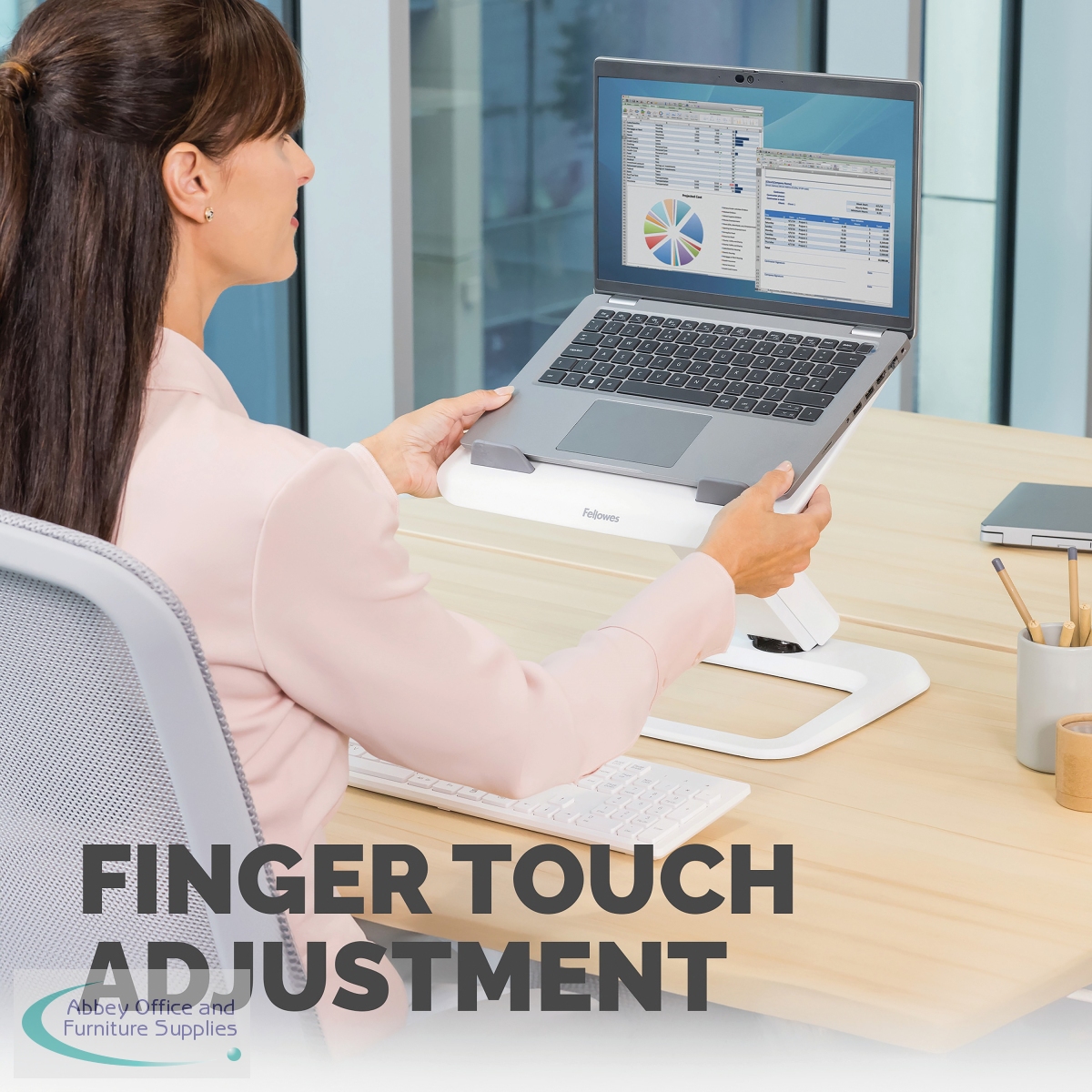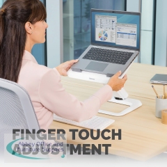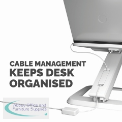The Fellowes Hana Laptop Stand is suitable for use to elevate your laptop to a comfortable viewing position to reduce eye, neck and shoulder strain. The Stand has a large height range with finger touch adjustment. Keep tangle free with built-in cable management.