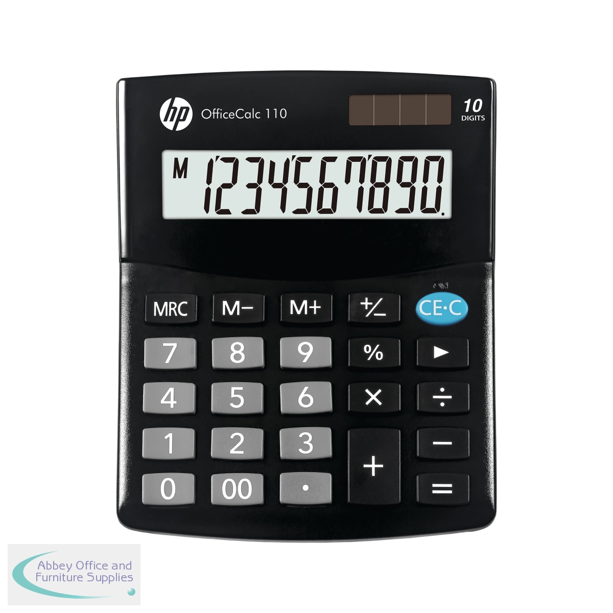 The Hewlett Packard OfficeCalc 110 is a semi-desktop calculator that is a convenient solution for quick calculation needs. The calculator has a tilted LCD display with 1 line x 10 digits. Featuring Percent, Sign change (+/-), Memory (3 keys), Double zero key (00) and Correction key ( ).