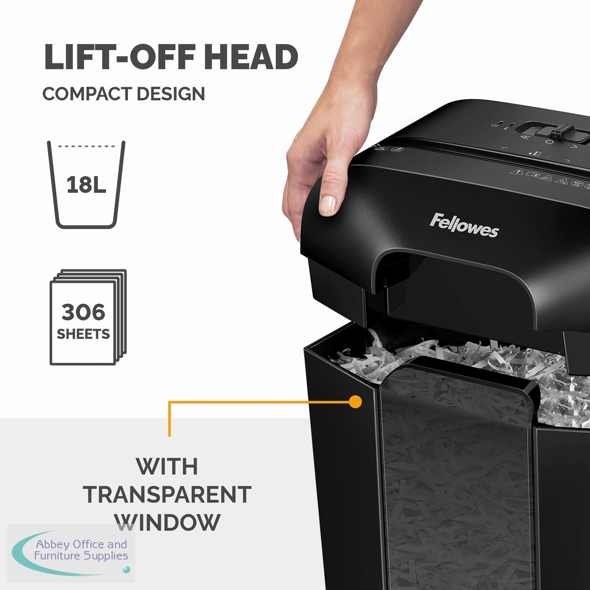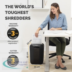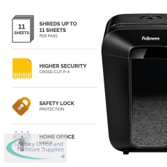 The Fellowes Powershred LX70 Cross-Cut Shredder is ideal for medium use in home and office environments. It can shred 11 sheets at a time into 4x40mm cross-cut particles. Patented Safety Lock disables the shredder for added safety protection. The LX70 shredder will shred continuously for up to 5 minutes before requiring a 30 minutes cool down period. The shredder bin has a 18 litre capacity with a lift-off head.