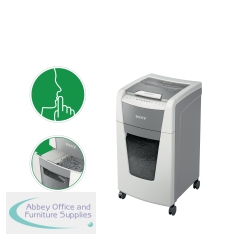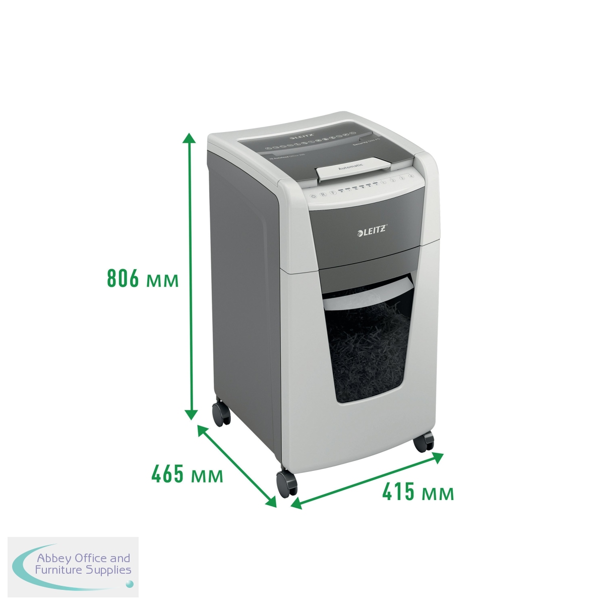 Fully automatic paper shredder from Leitz with unique clean emptying feature. So intelligent it quietly works on its own, just insert your stack of papers (including staples and paper clips), close the lid and get on with your day. Ideal for office use. Higher security and excellent performance with this anti jam, quiet and long running (60 minute) autofeed shredder. Automatically shred 300 sheets of A4 into security P-5 (2x15mm) micro-cut pieces in one go into the generous 60L bin. Simple operation using touch controls.