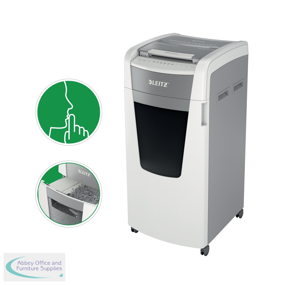 Fully automatic paper shredder from Leitz with unique clean emptying feature. So intelligent it quietly works on its own, just insert your stack of papers (including staples and paper clips), close the lid and get on with your day. Higher security and excellent performance with this anti jam, quiet and top of the class long running (240 minute) autofeed shredder. Automatically shred 600 sheets of A4 into security P-5 (2x15mm) micro-cut pieces in one go into the large 110L bin. Simple operation using touch controls.