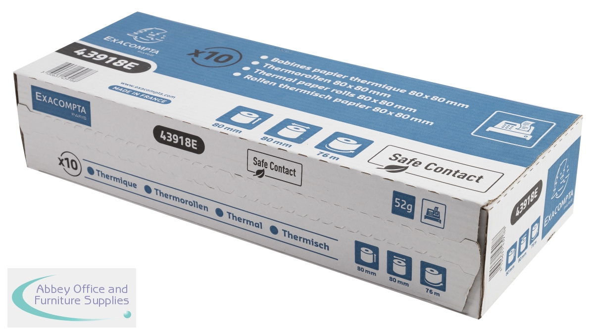 GH43918 - Exacompta Safe Contact Credit Card Receipt Roll 80mmx80mmx76m (Pack of 10) 43918E