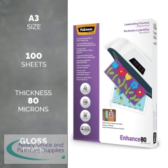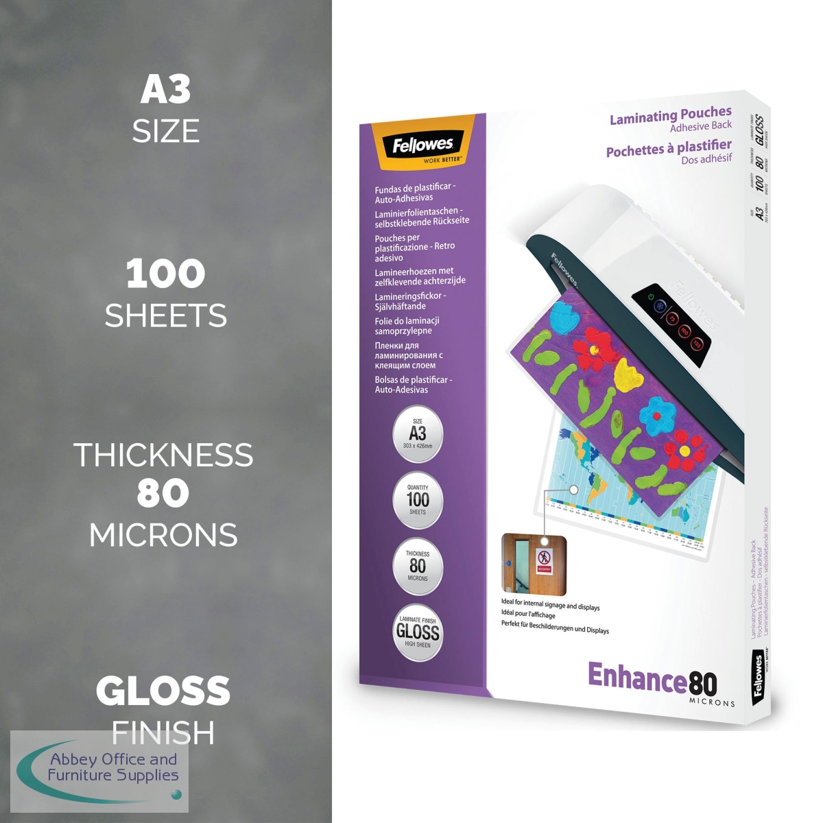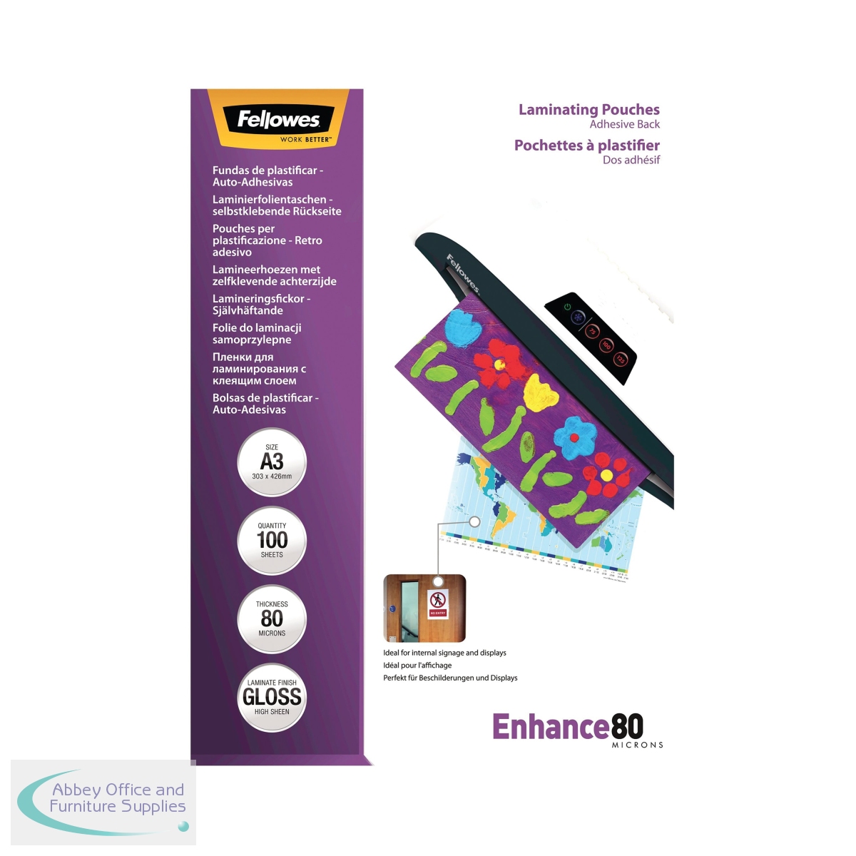 BB53023 - Fellowes Enhance80 Self Adhesive Laminating Pouch A3 160 Micron Total Gloss (Pack of 100) 5302302