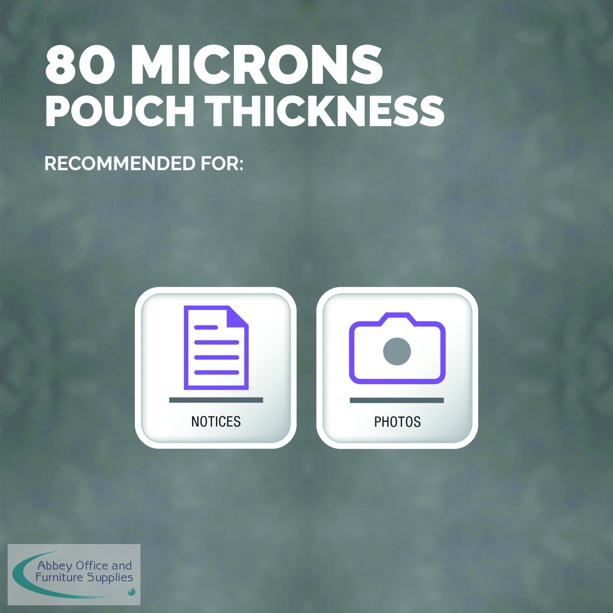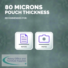 The Fellowes A3 Laminating Pouch provides sturdy protection for notices, craft materials, signage and frequently handled documents. Keeping them clean and pristine for a professional look and to make sure important notices are always visible and clear. These 80 micron laminating pouches have an adhesive back offering an everyday level of document protection.