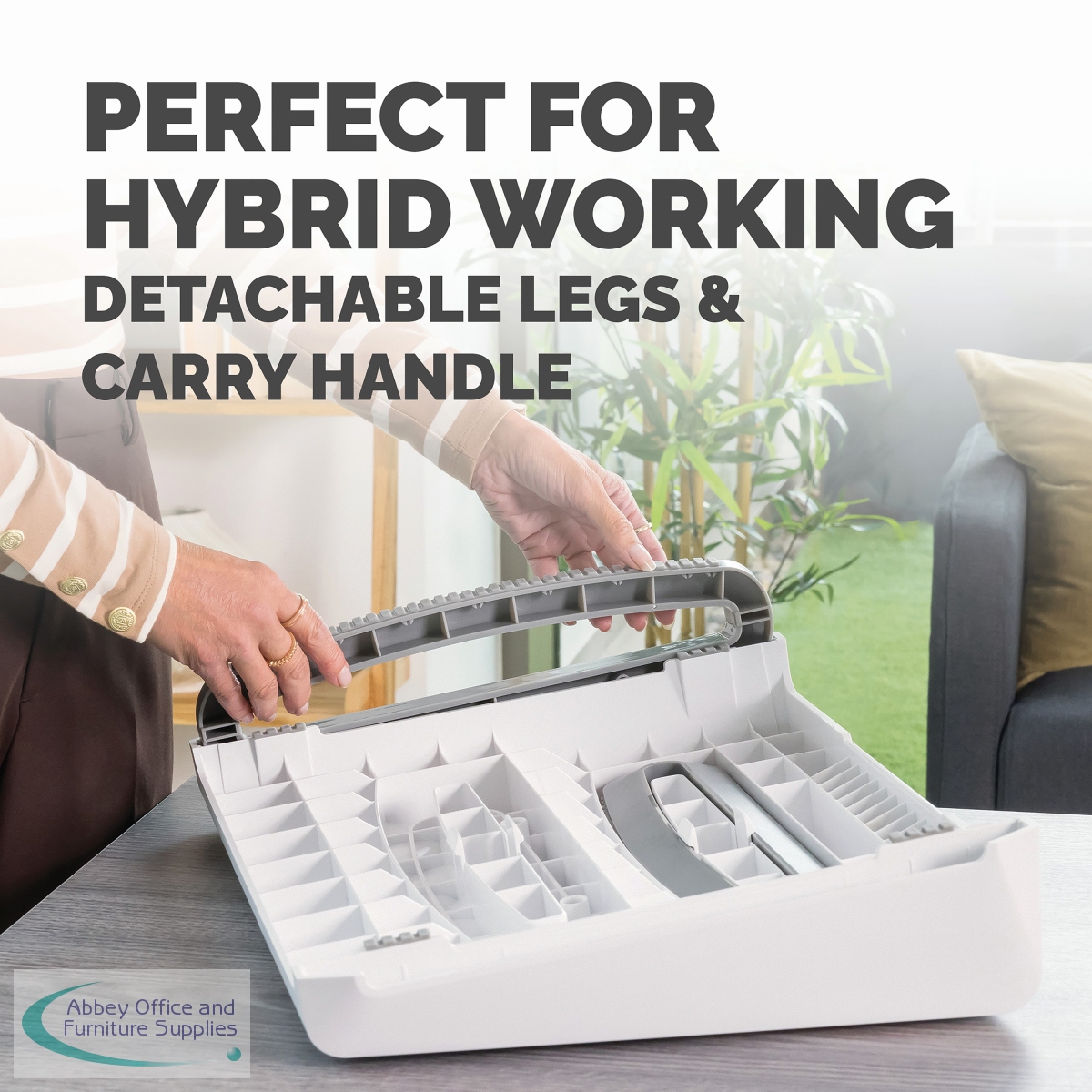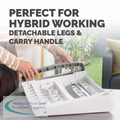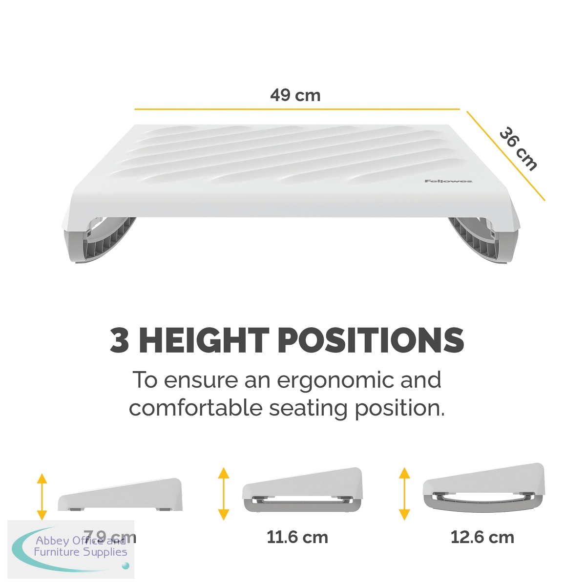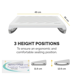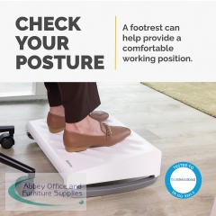 The Fellowes Breyta Footrest has a large platform with 3 height adjustments to ensure ergonomic positioning while the rocking option increases movement and circulation. The legs clip in underneath the platform when not in use for easy storage.