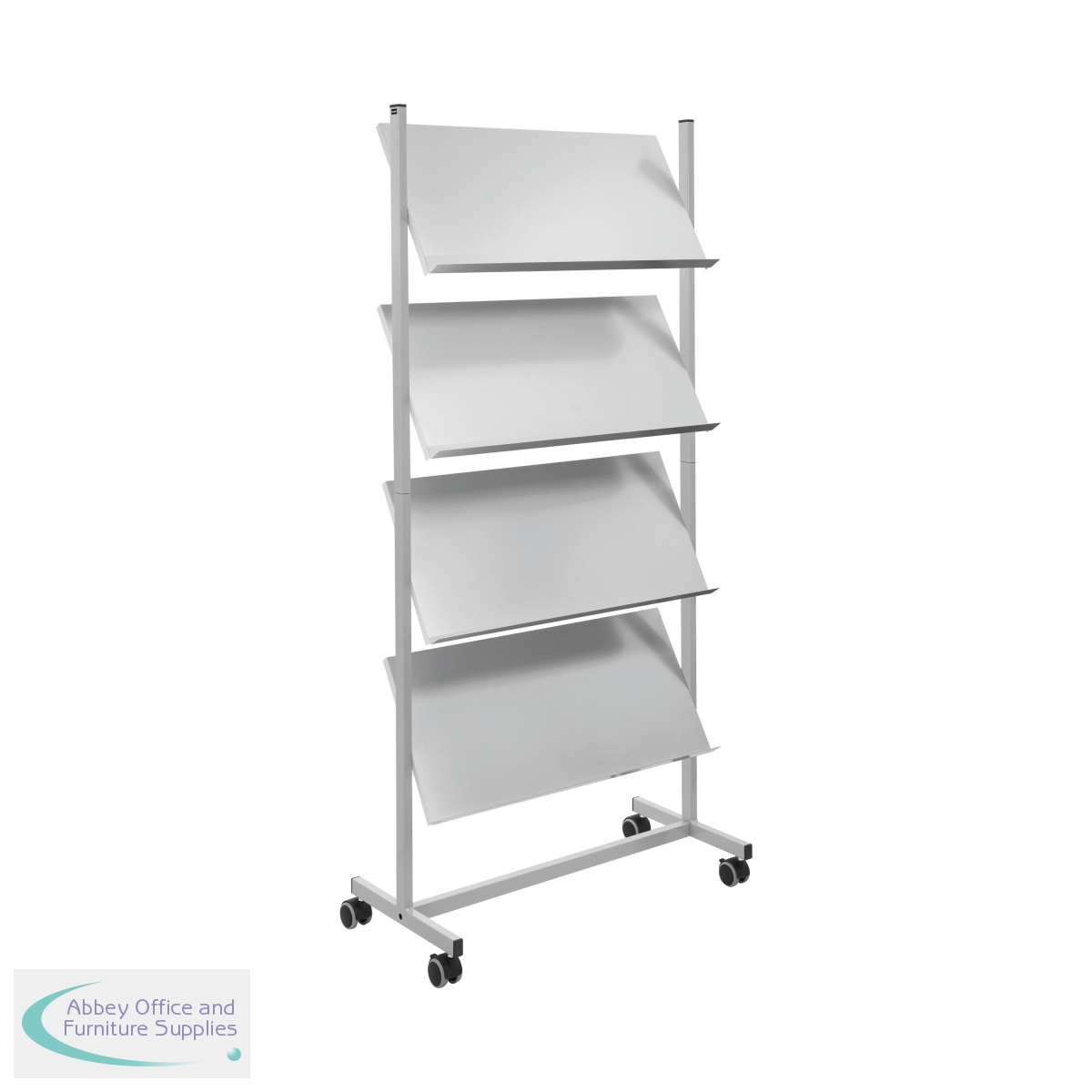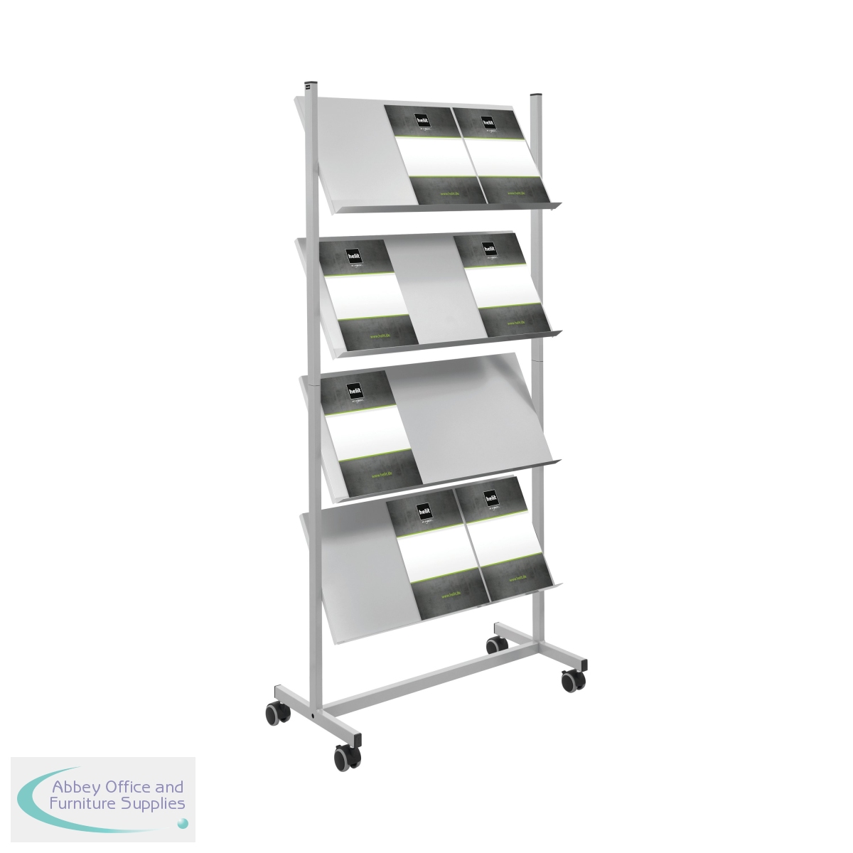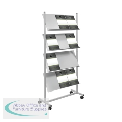 Perfect for use with magazines, literature and brochures, the wide Helit Rolling floor stand is mobile for easy access to documentation, featuring space for up to twelve A4 magazines and leaflets at a glance. Manufactured from a powder coated, steel, it sits on four castors, two of which lock, to enable the display to be moved around to the desired area with ease and locked into place.