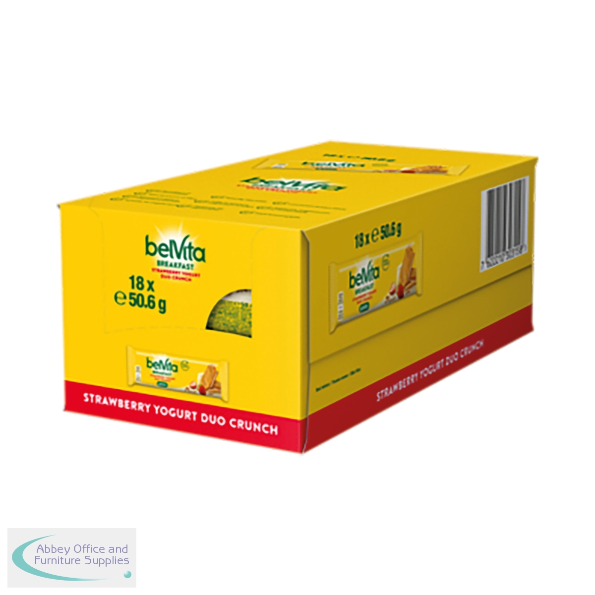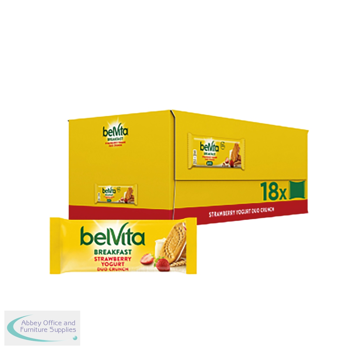 The belVita breakfast Duo Crunch biscuits are made with wholegrain cereals with live yogurt and strawberry filling. Gently baked to preserve the nutritional qualities. A source of calcium, magnesium and iron. No colours or preservatives. Suitable for Vegetarians. This pack contains 18 x 50.6g bars. Each individually wrapped pack contains 2x duo bars.