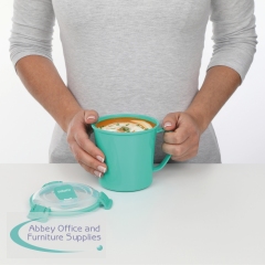 The Sistema Microwave soup mug is ideal for soup, stews, noodles and hot drinks at home or at the office. Perfect for heating the contents in the microwave and drinking/eating straight from the mug. Featuring an open vent to prevent splatters in the microwave. This medium sized BPA and Phthalate-free mug is suitable for the dishwasher (top rack), microwave and freezer.