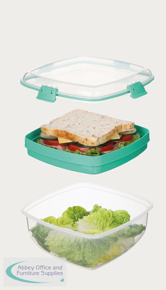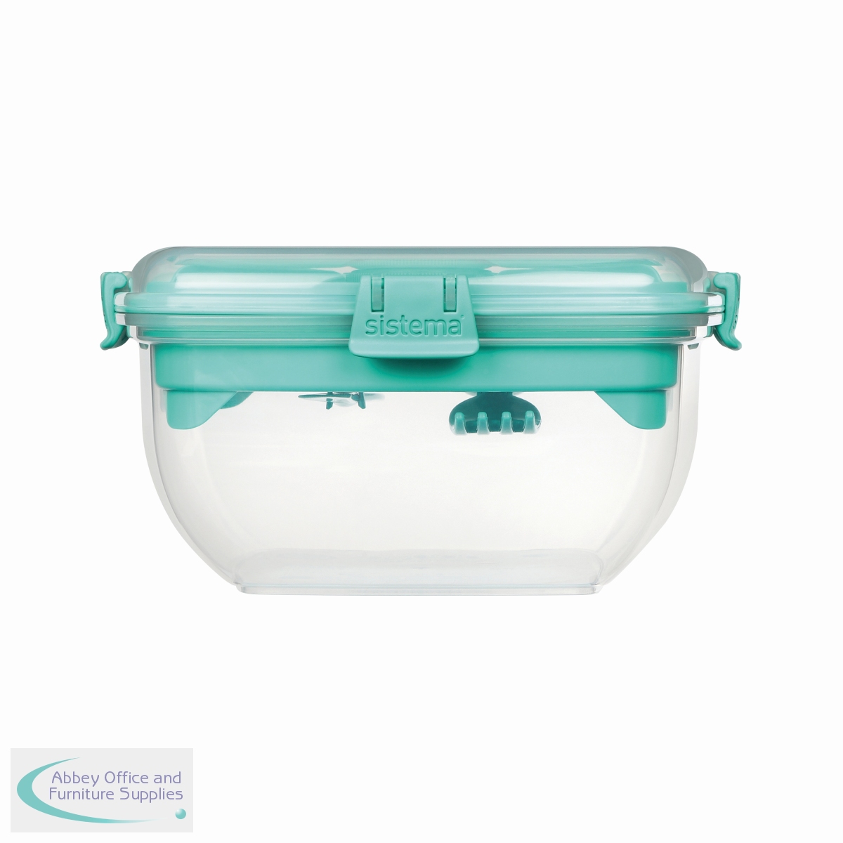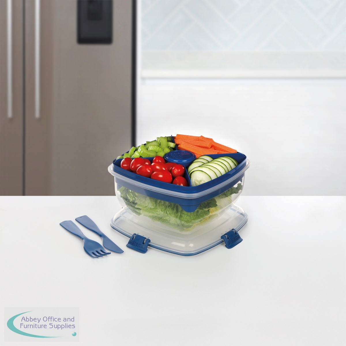 The Sistema Salad Max TO GO is a larger version of the Sistema Salad TO GO and is perfect for transporting larger salads on the go. The divided insert tray and dressing pot keep ingredients separate until ready to eat, while the generous sized base is perfect for mixing salads. The convenient knife and fork clip into the tray and eliminate the need to carry separate cutlery, plus the Sistema easy locking clips and flexible seal keep food fresher for longer.