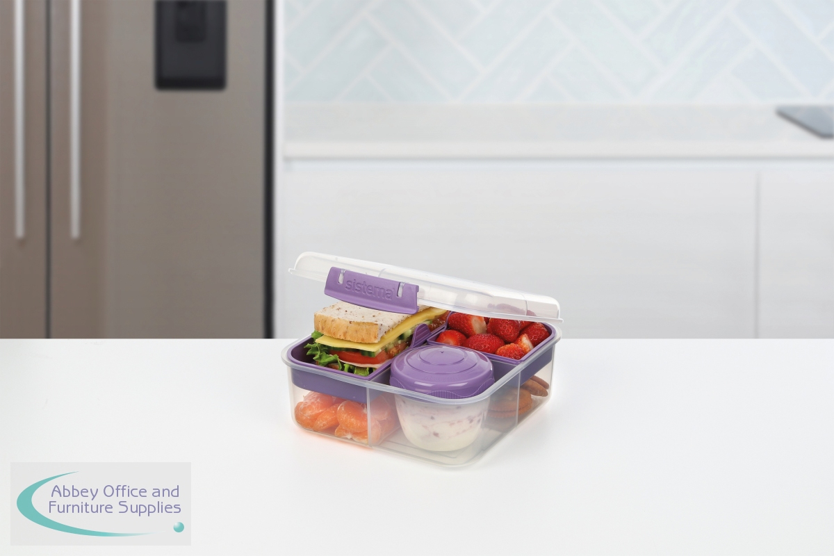 The Sistema Bento Cube to Go is an innovative design with multiple compartments, removable trays, and a screw top yogurt pot, keeping food separate until ready to be eaten. Featuring a lid with easy locking clips and an extended flexible seal to help keep items fresh, this BPA and Phthalate-free food storage container is suitable for the dishwasher (top rack), microwave and freezer.
