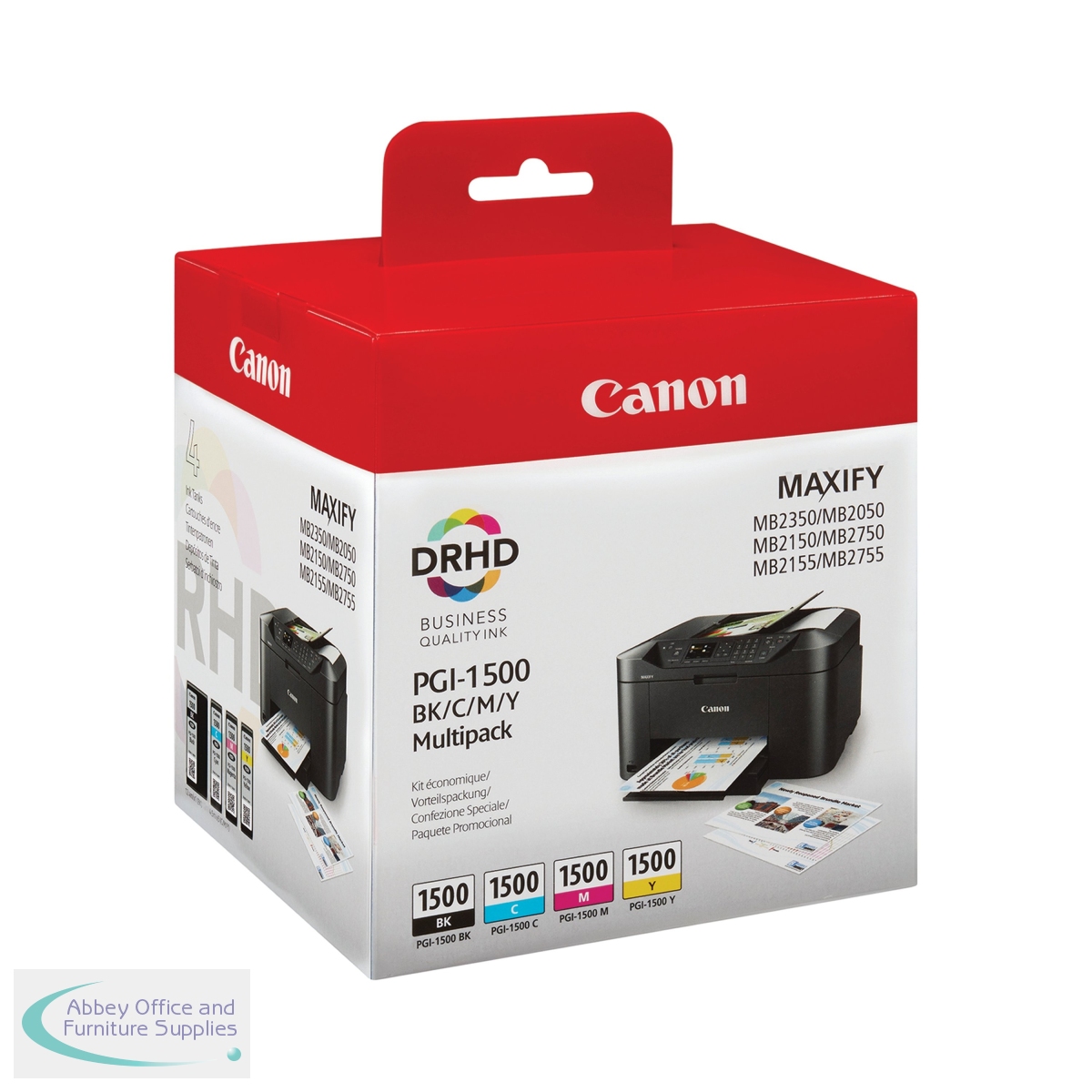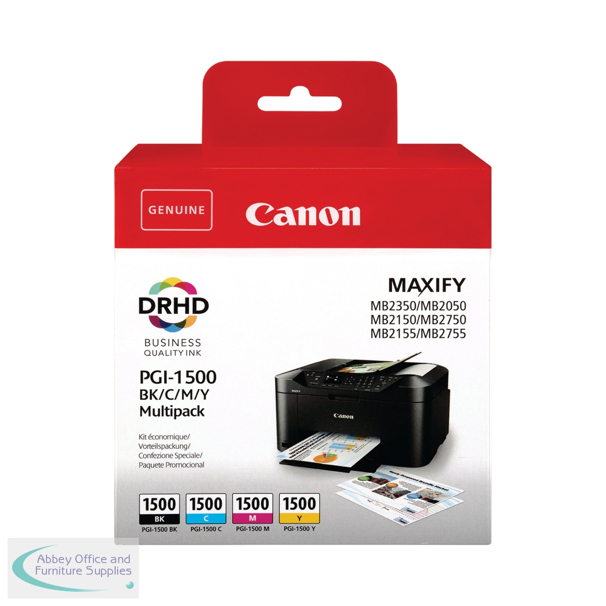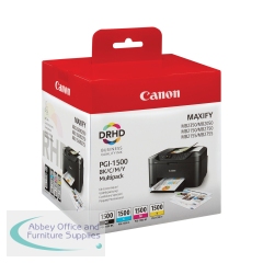 Save money with this Canon PGI-1500 four-colour multipack of black, cyan, magenta and yellow DRHD pigment inks. Used for printing high quality business documents on plain paper, these inks ensure crisp, sharply defined fonts and perfect graphics. Print up to 400 pages black, 300 pages each cyan, magenta and yellow. Genuine Canon Ink promises better quality and more reliability.