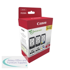 This Canon multi pack is your affordable solution to long-lasting printing. It includes the 13ml Canon CL-546 Colour Ink Cartridge for printing up to 300 pages of A4 vibrant colour, and two packs of the 15ml Canon PG-545 Ink Cartridge for printing up to 800 pages of deep blacks. Genuine Canon Ink promises better quality and more reliability, meaning that you can print more for less.