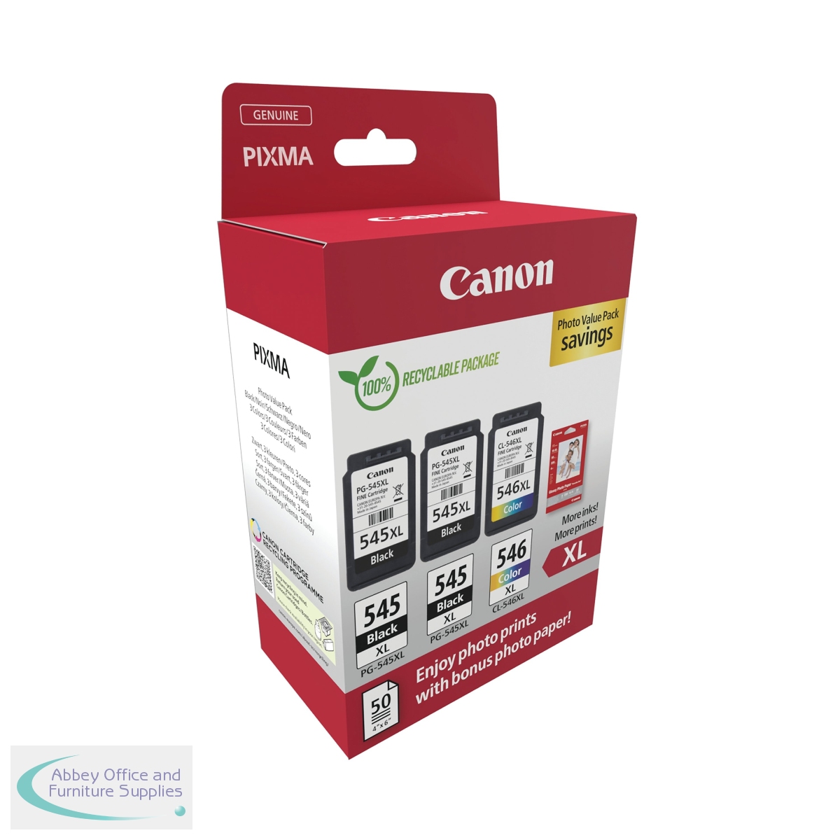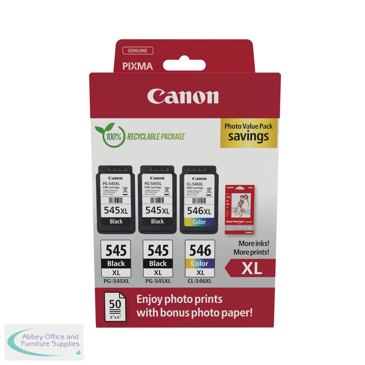 CO68004 - Canon PG-545XL x 2/CL-546XL Ink Cartridges High Yield K/CMY + 4x6 in Photo Paper Value Pack 8286B015
