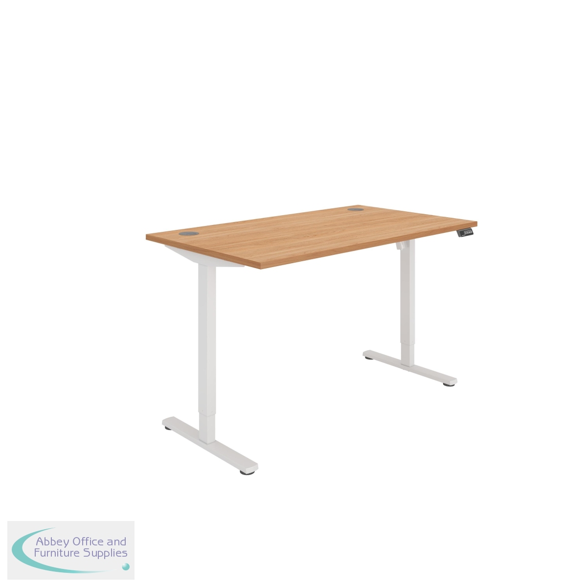 KF800014 - Astin Economy Single Motor Sit/Stand Desk 1400x800x705-1220mm Norweigian Beech/White KF800014
