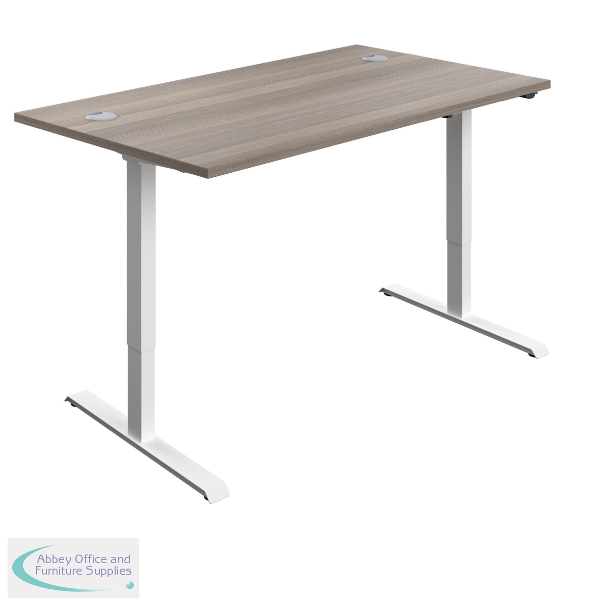 KF803918 - First Economy Single Motor Sit/Stand Desk 1400x800x705-1220mm Grey Oak/White KF803918
