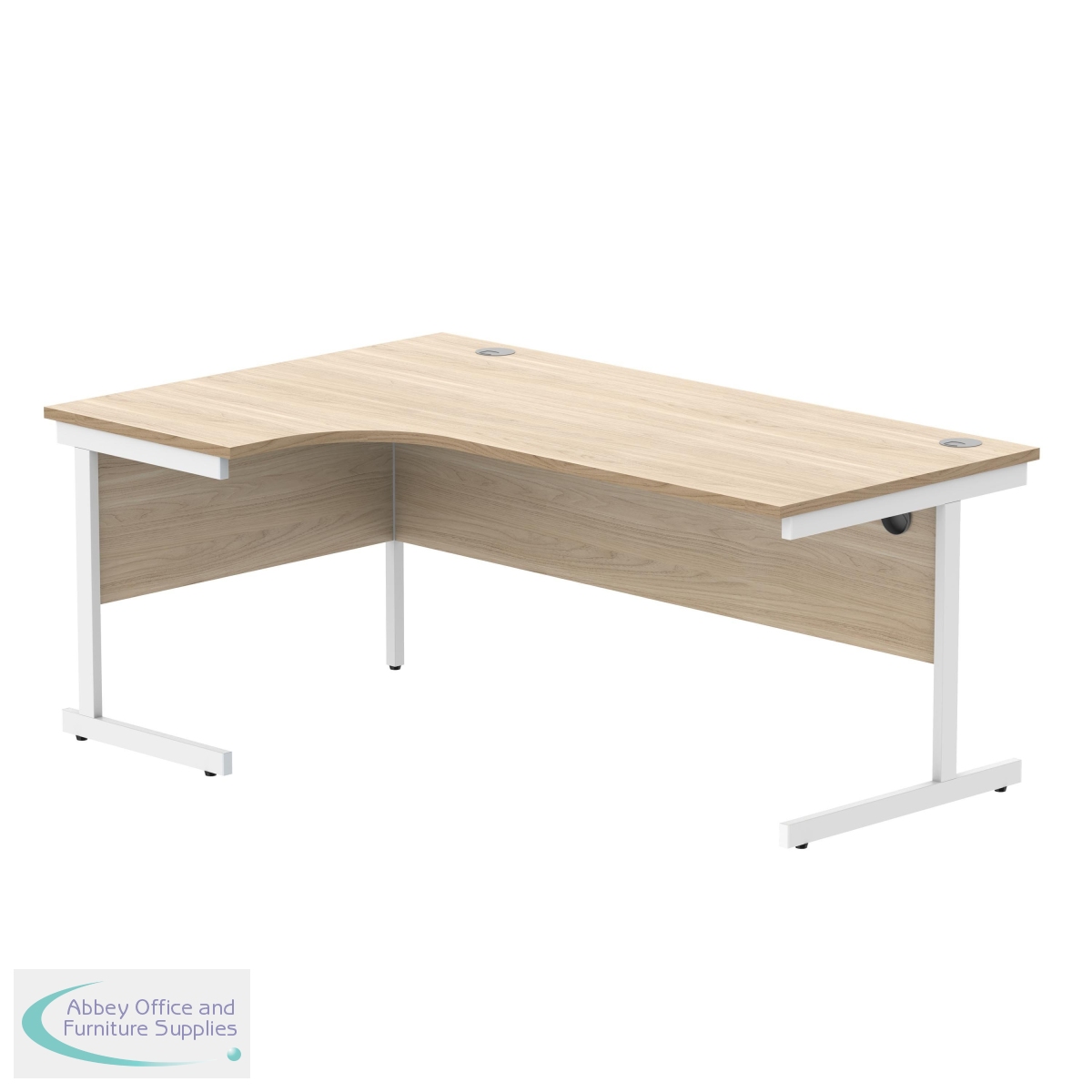 Astin Radial Left Hand Single Upright Desk is a durable and spacious rectangular office desk for use in any setting. This Radial Desk features a strong cantilever frame for support and stability. The desk includes 80mm cable ports fitted as standard.