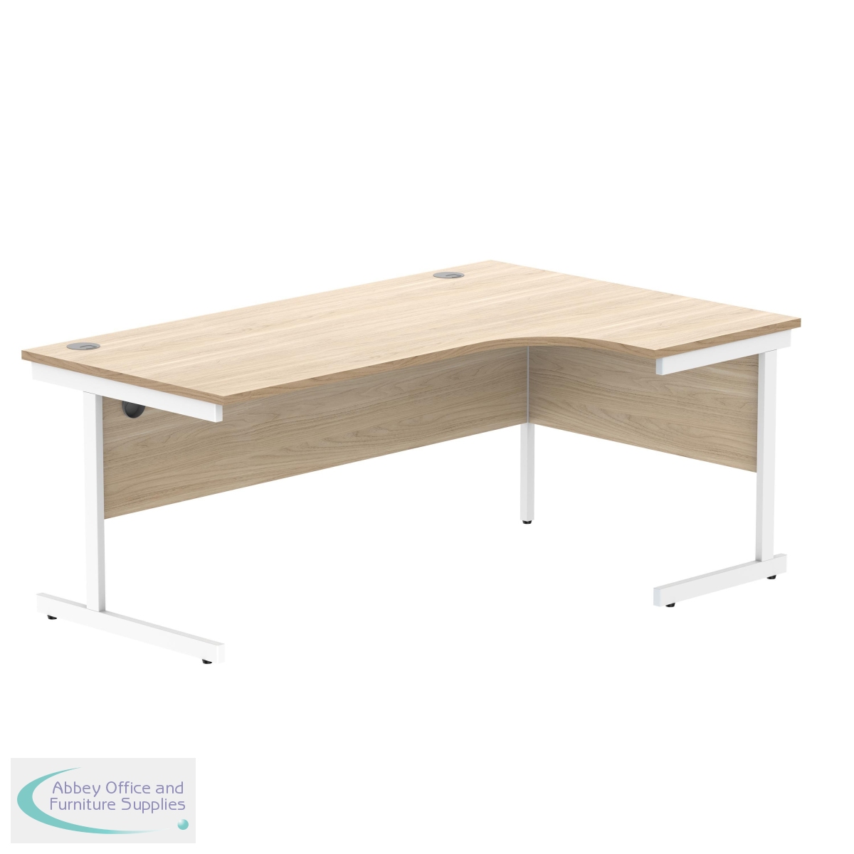 Astin Radial Right Hand Single Upright Desk is a durable and spacious rectangular office desk for use in any setting. This Radial Desk features a strong cantilever frame for support and stability. The desk includes 80mm cable ports fitted as standard.