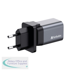 Verbatim's 35W GaN Wall Charger combines one USB-C PD 35W port and one USB-A QC 3.0 port in a sleek, palm sized design. Ideal for the office, home or travelling to power your tablet, smartphone, gaming devices, and more. With its foldable US prongs and replaceable EU and UK plugs, it's the ultimate travel companion. Galliam Nitride (GaN) technology delivers high-powered, fast, efficient charging, and generates less heat. GaN chargers are smaller and lighter than traditional silicon-based chargers, making them ultra-portable and ideal for travel.