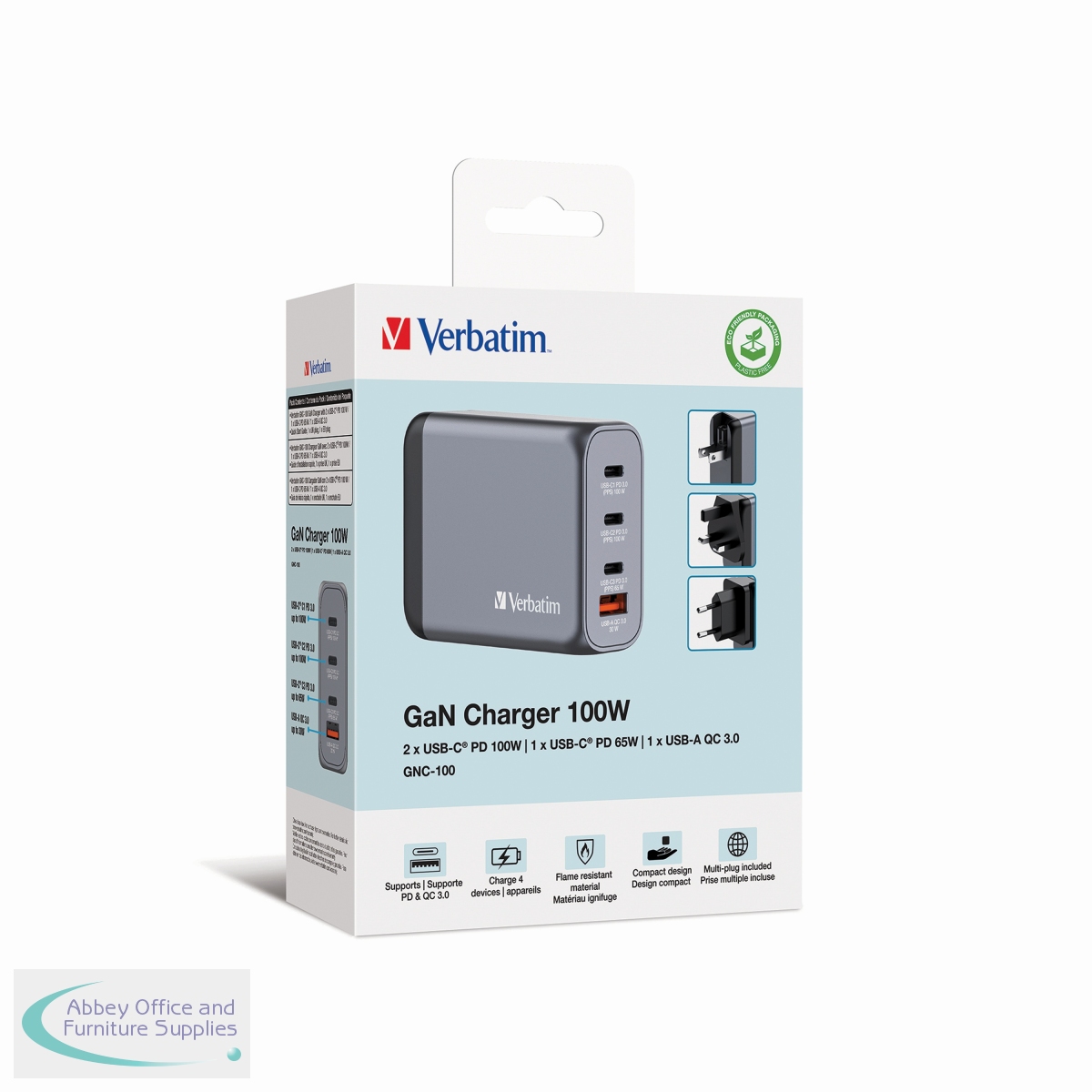 VM32202 - Verbatim GNC-100 GaN 100W 4 Port Charger 32202