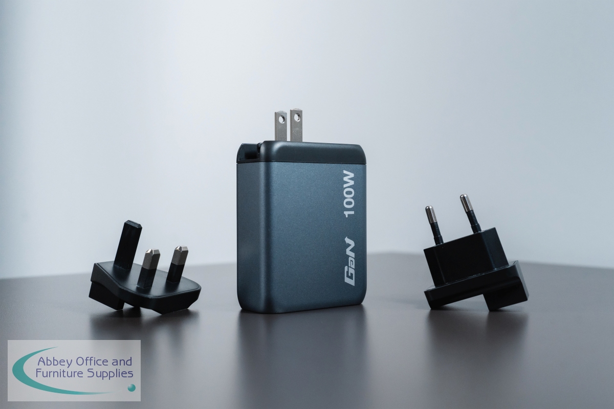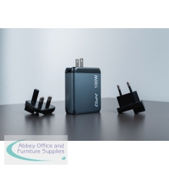 Verbatim's 100W GaN Wall Charger consolidates multiple chargers into one, combining two USB-C PD 100W ports, one USB-C PD 65W port and one USB-A QC 3.0 (EU/UK/US) port in a sleek, palm sized design. Ideal for the office, home or travelling to power your laptop, tablet, smartphone, gaming devices, and more. With its foldable US prongs and replaceable EU and UK plugs, it's the ultimate travel companion. Galliam Nitride (GaN) technology delivers high-powered, fast, efficient charging, and generates less heat. GaN chargers are smaller and lighter than traditional silicon-based chargers, making them ultra-portable and ideal for travel.
