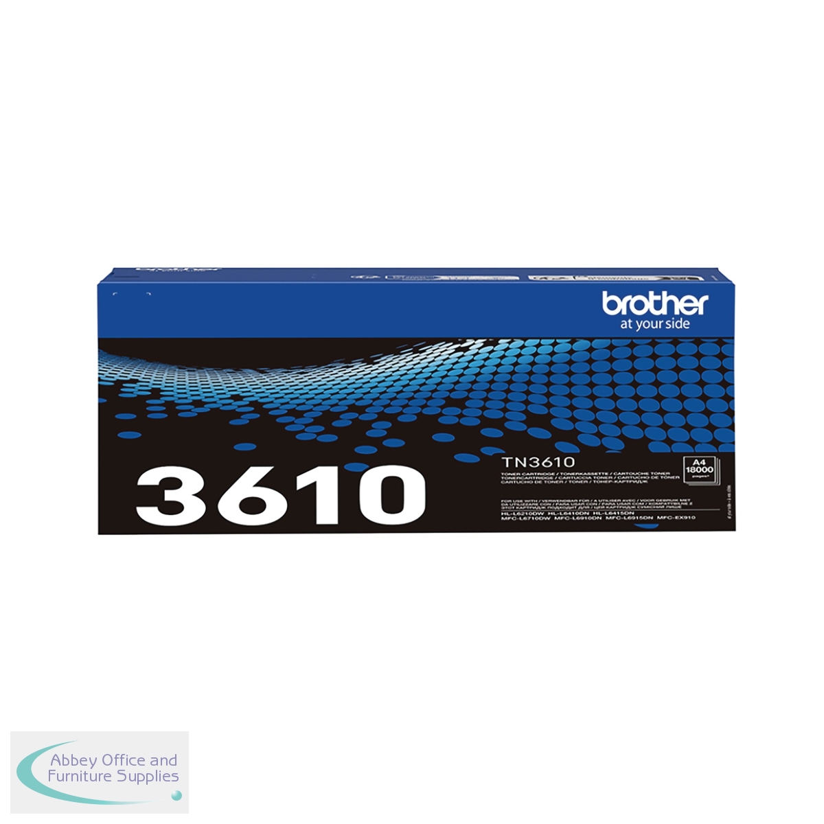 Manufactured for optimum performance with Brother machines. The Brother TN-3610 standard yield toner cartridge provides high quality results from the first page to the last. Print yield of up to 18,000 pages.