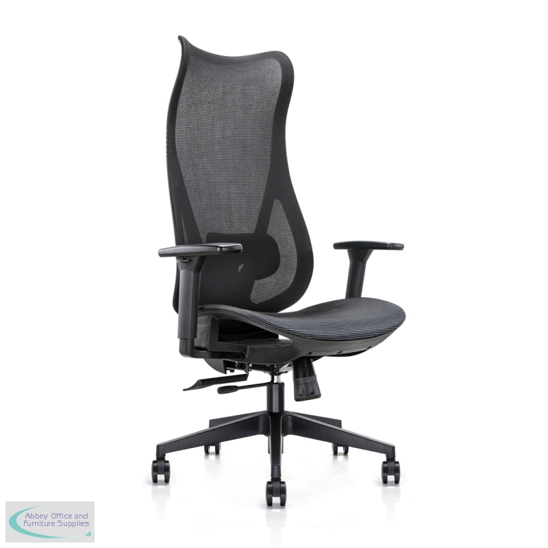 Ultra High Back Task Chair with Adjustable Lumbar Support & Knee Tilt Mechanism.