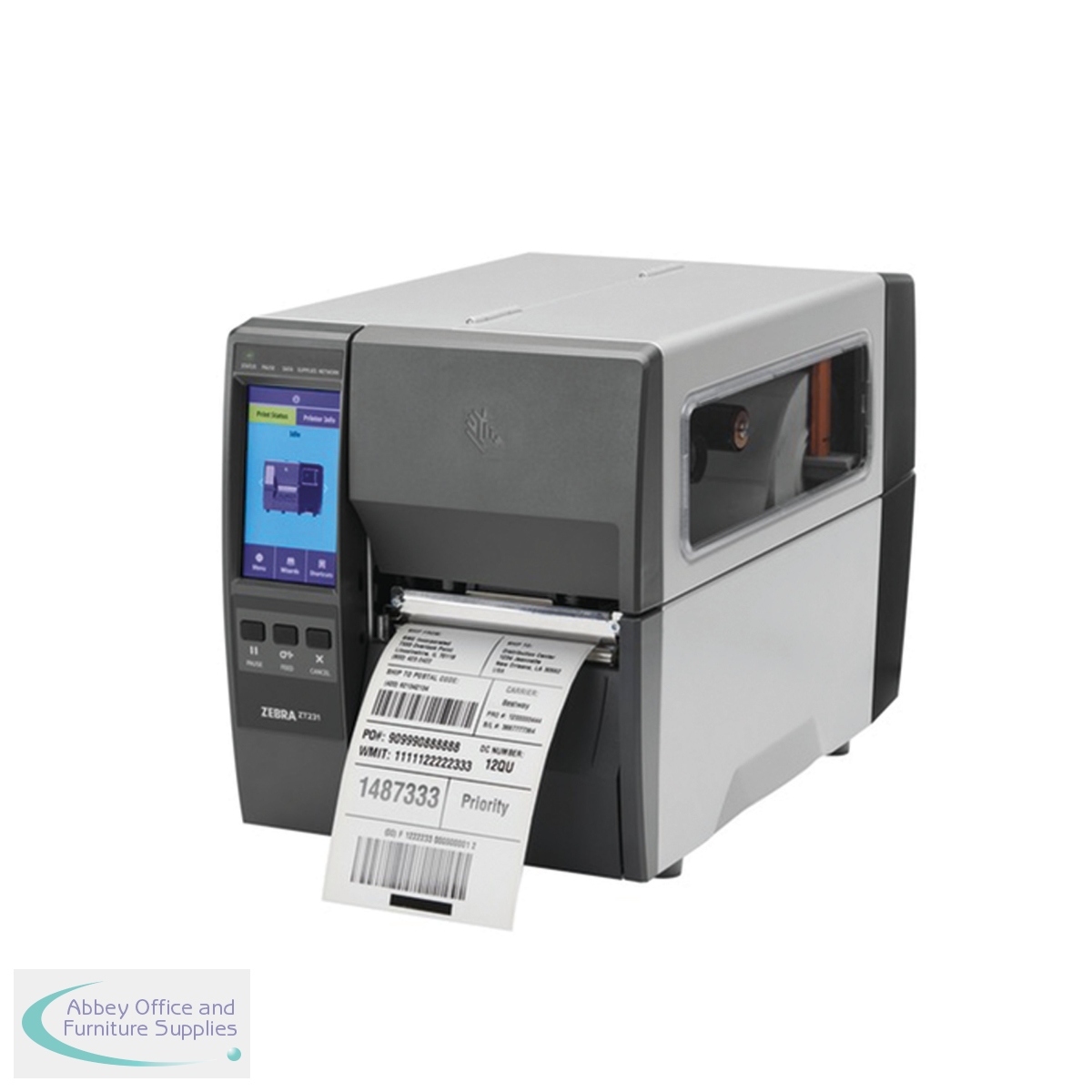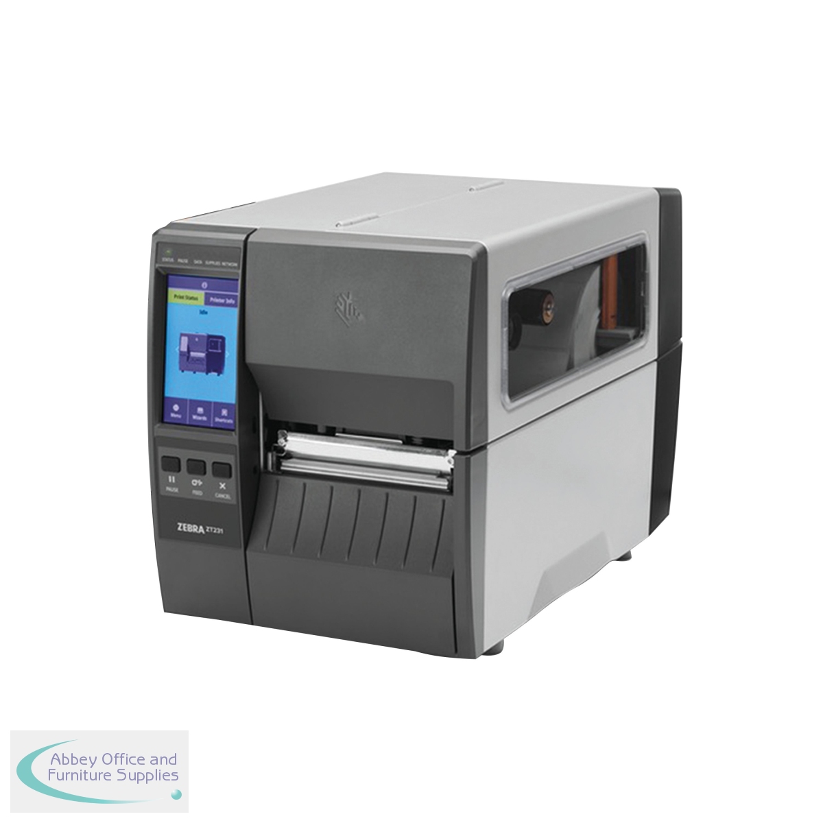 The Zebra ZT231 label direct thermal printer delivers the winning combination of the right features with the long-lasting quality you expect from Zebra. The ZT231 label printer is particularly designed for label production in warehouses, logistics and production. Built using metal for a sturdy housing. Changing the colour ribbons and label rolls is easy - simply open the cover and replace - without any bothersome threading. Ribbon capacity is approximately 450m. The view window always gives you a quick look at the material status. A high print quality for barcodes, words and graphics is guaranteed by the resolution of 203dpi. The colour touchscreen display of the ZT231 support the printers' intuitive handling, simplify voice commands, as well as control the printer properties.