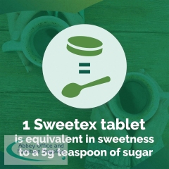 Sweetex tablets are ideal for people wishing to cut down on sugar, as part of a healthier lifestyle with a balanced diet. One Sweetex tablet is equivalent in sweetness to a 5g teaspoon of sugar but with none of the calories. Use Sweetex tablets instead of sugar in hot and cold drinks. Each pack contains 300 tablets. 6 packs supplied.