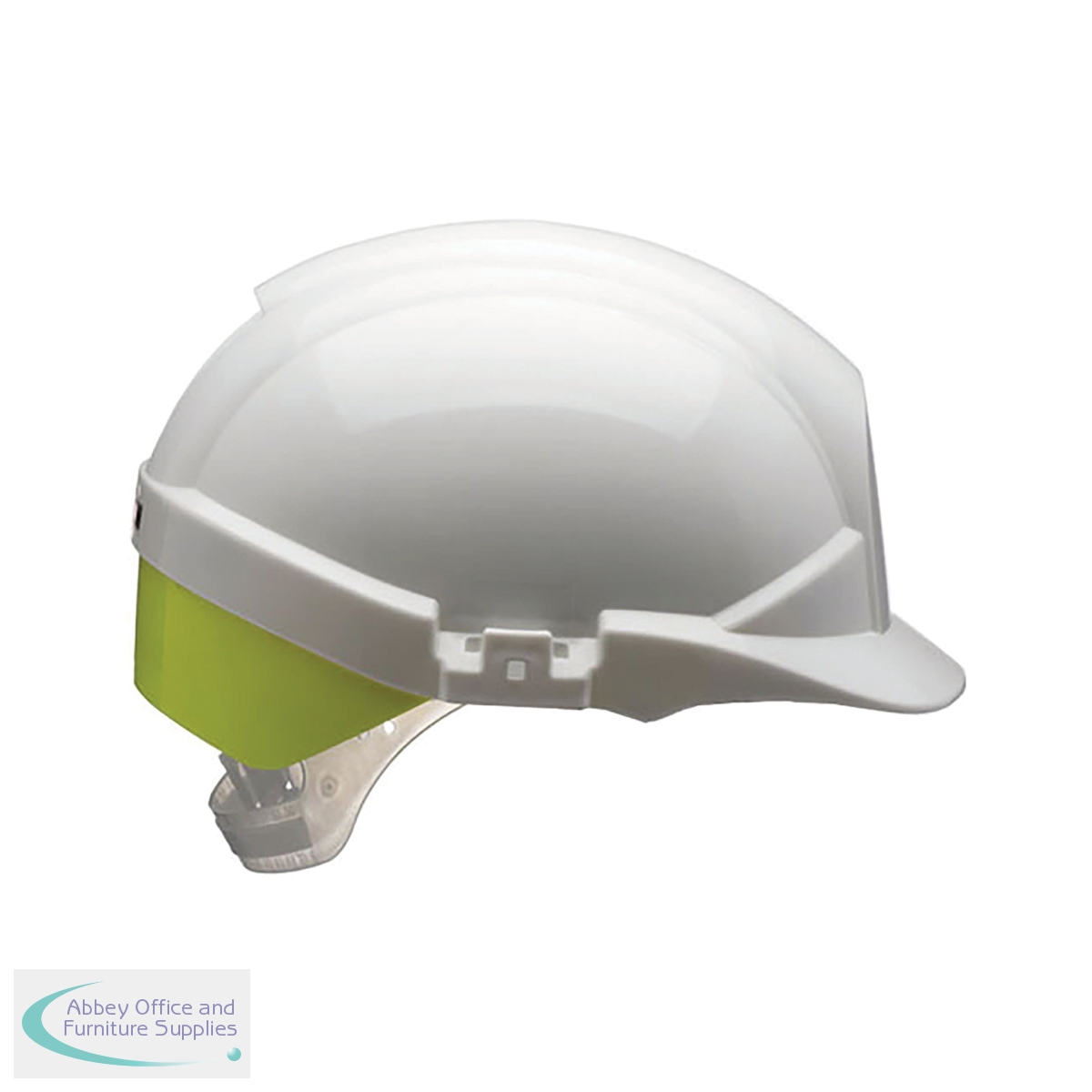 Centurion Reflex Safety Helmet with Yellow Rear Flash. A general purpose HDPE safety helmet with a unique rear flash in High Visibility yellow for added wearer security. 6 point Nylon Textile cradle. Brushed Nylon sweatband. Ventilation as standard. Approved to EN 397. EN50365.