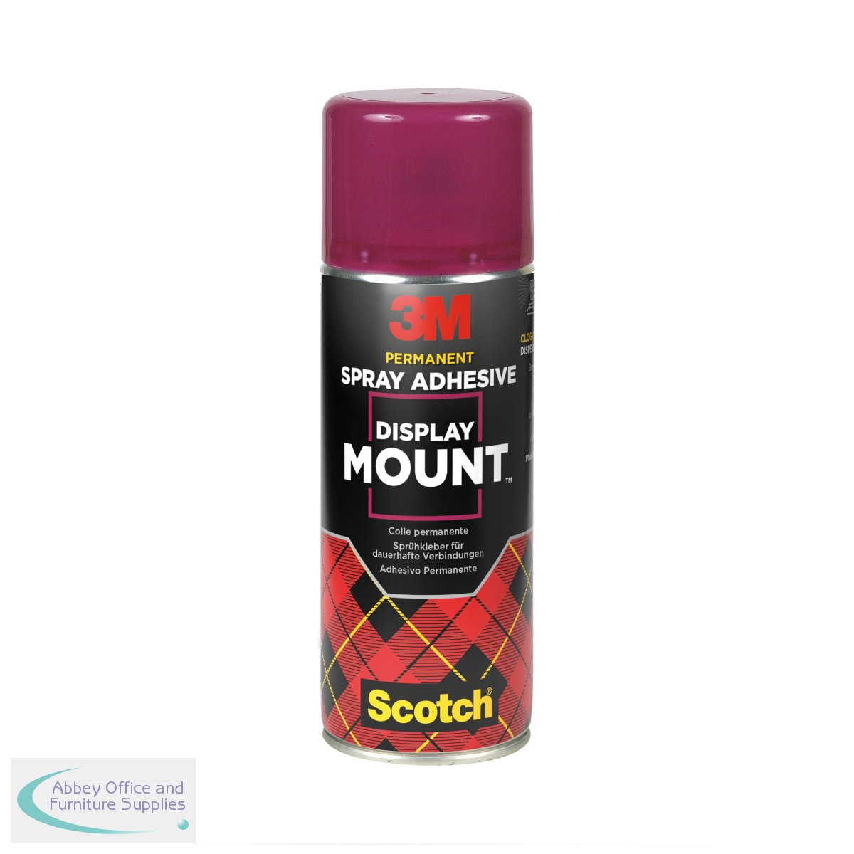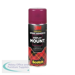 Scotch DisplayMount is a strong adhesive for permanent mounting and bonding. This multi-purpose adhesive is specially designed for exhibitions, studios and theatre sets, display work and many other applications where heavy-duty adhesive is needed. It is ideal for bonding most porous and non-porous materials, including many plastics, fabrics, metal foils, paper, board, carpeting and rubber. The new controlled spray pattern reduces adhesive mist. Supplied in a 400ml can.