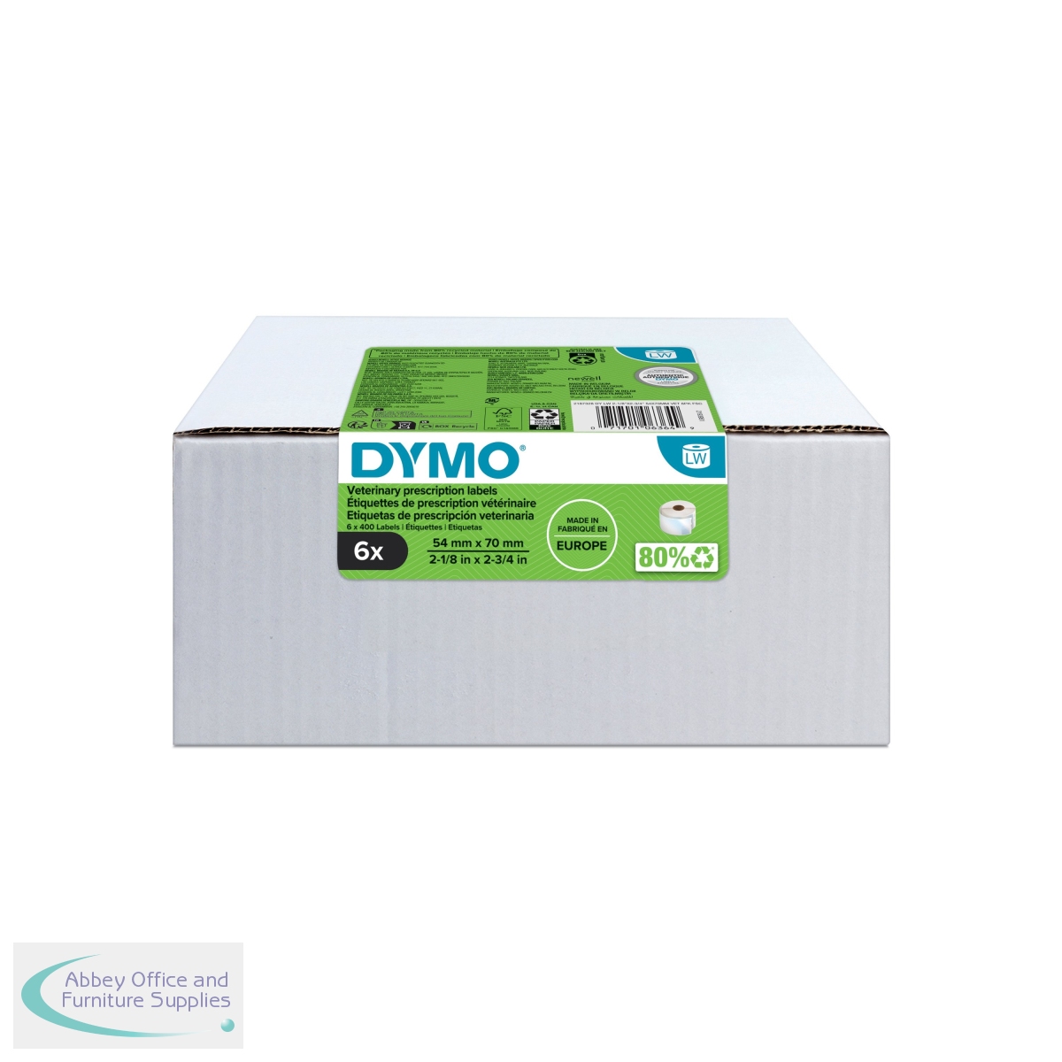 BR87328 - Dymo Labelwriter Veterinary Prescription 54x70mm Easy-Peel 400 Labels (Pack of 6) 2187328
