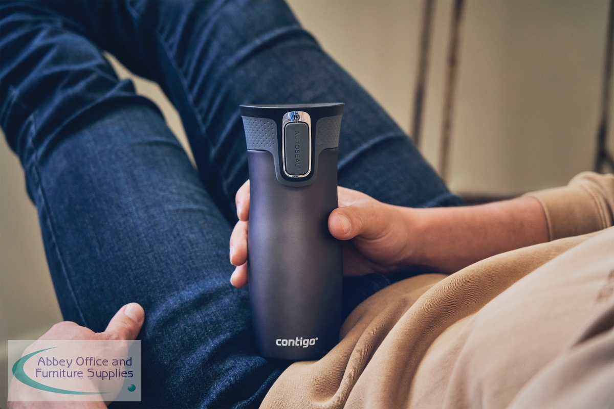 The Contigo West Autoseal travel mug is a stainless steel vacuum flask, perfect for hot and cold drinks while out and about, or near electrical items such as laptops, where spillage would be a problem. With a generous capacity of 470ml, the mug features an easy to clean lid made from BPA-free plastic. This leak-proof tumbler is supplied in a sleek Gun Metal grey finish with stainless steel interior and embellishment around the button. Keeping drinks hot for up to five hours and cold for up to 12 hours, the Contigo West travel mug is 100% spill-proof and the convenient button lock provides added security.