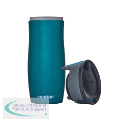 The Contigo West Autoseal travel mug is a stainless steel vacuum flask, perfect for hot and cold drinks while out and about, or near electrical items such as laptops, where spillage would be a problem. With a generous capacity of 470ml, the mug features an easy to clean lid made from BPA-free plastic. This leak-proof tumbler is supplied in a sleek Biscay Bay blue finish with stainless steel interior and embellishment around the button. Keeping drinks hot for up to five hours and cold for up to 12 hours, the Contigo West travel mug is 100% spill-proof and the convenient button lock provides added security.