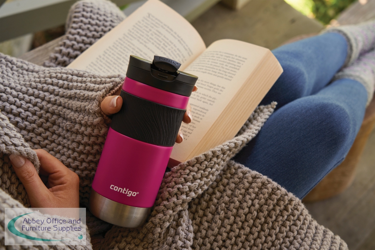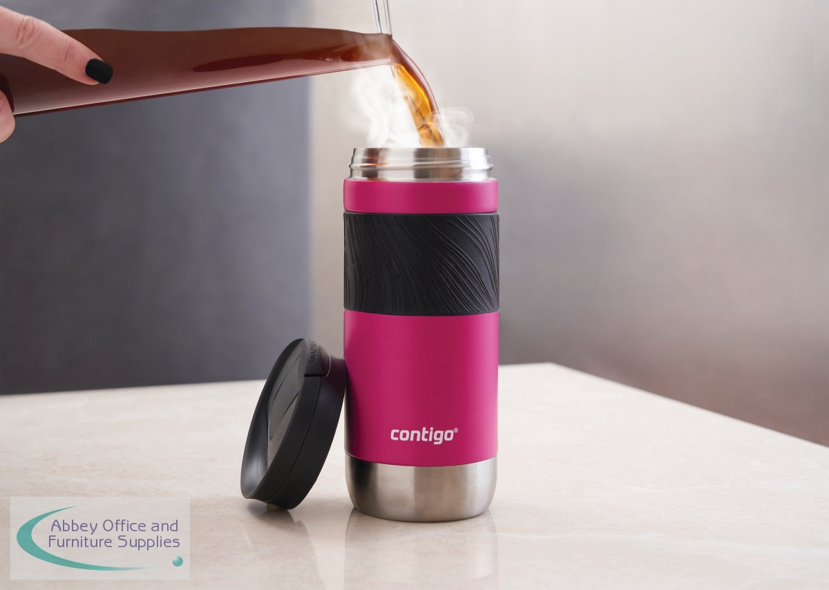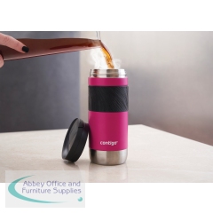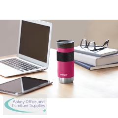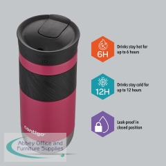 The Contigo Byron 2.0 Snapseal travel mug is a stainless steel vacuum flask, perfect for hot and cold drinks while out and about. With a generous capacity of 470ml, the mug features an easy to clean, removable lid made from BPA-free plastic. This leak-proof tumbler is supplied in a bright Dragon Fruit pink finish with stainless steel interior and contrasting black grip band. Keeping drinks hot for up to six hours and cold for up to 12 hours, the Contigo Byron 2.0 travel mug is leak-proof when the lever is in closed position.