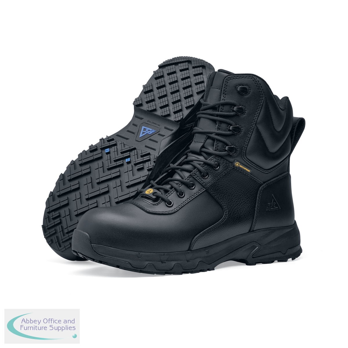 Shoes For Crews Unisex Guard High S3 Leather Waterproof Boot. With heat resisteant outsole, it is water resistant, slip resistant and has ladder grip. Superior slip and clog resistant outsole. The boot is waterproof with a nano composite toe cap as well as being puncture resistant and metal free. Resistant to Penetration by bloodborne Pathogens. Featuring TripGuard and a zip to easily put on and take off. Removable Cushioned Insole (Recycled EVA) and recycled Polyester lining.