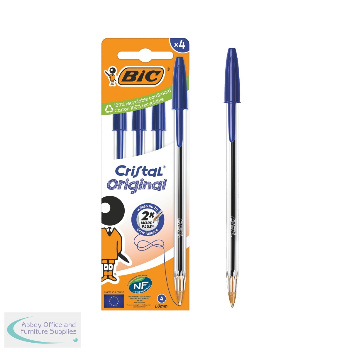 BC73454 - Bic Cristal Ballpoint Pen Medium Blue (Pack of 4) 516332