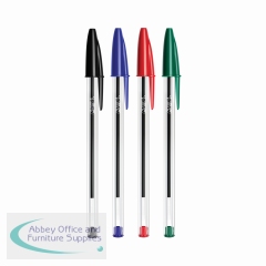 These Bic Cristal Ballpoint Pens feature a durable tungsten carbide ball mechanism and smooth, instant drying ink for reliable, everyday use. The medium 1.0mm tip produces a thin 0.32mm line. The hexagonal barrel includes a coloured cap and end plug that matches the ink colour for easy identification. This pack contains 4 assorted pens in a recyclable cardboard box.