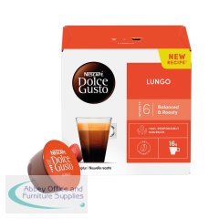 Nescafe Dolce Gusto uses fifteen bar pump pressure to create barista-quality drinks at the touch of a button. Using a pod system of individual servings in foil-sealed capsules to lock in freshness, making your favourite drink could not be any simpler. These Cafe Lungo coffee capsules are made by passing the whole cup of water through the ground beans for a remarkably balanced, long coffee with roasty, blackcurrant notes. To get this exceptional taste in a few seconds, just insert the capsule into your machine for a coffee that is second to none. This pack contains 48 capsules.