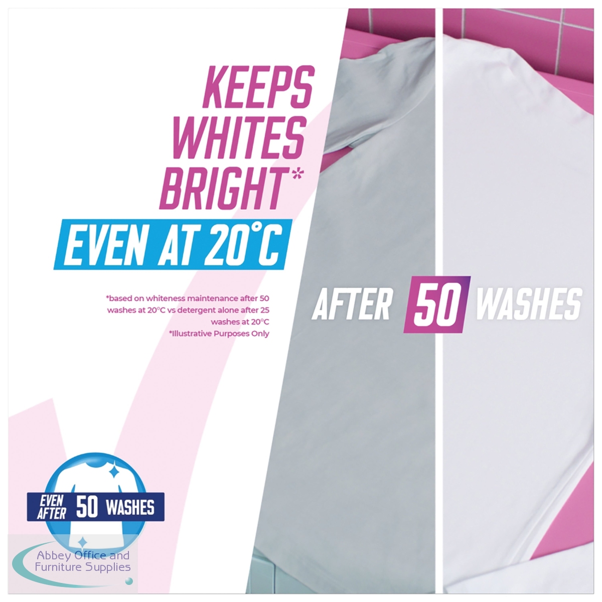 Oxi Action Crystal White formula, gives whiter whites even after 50 washes even at 20 degrees centigrade. Its multi benefit formula maintains whites, removes stains and odours whilst giving the laundry a hygiene boost in-wash. A versatile and convenient whitening booster and stain remover, just add one scoop in every wash along with your laundry detergent (such as washing powder, washing liquid or washing capsules) to double the life of your whites. Safe on everyday fabrics like cotton and polyester.