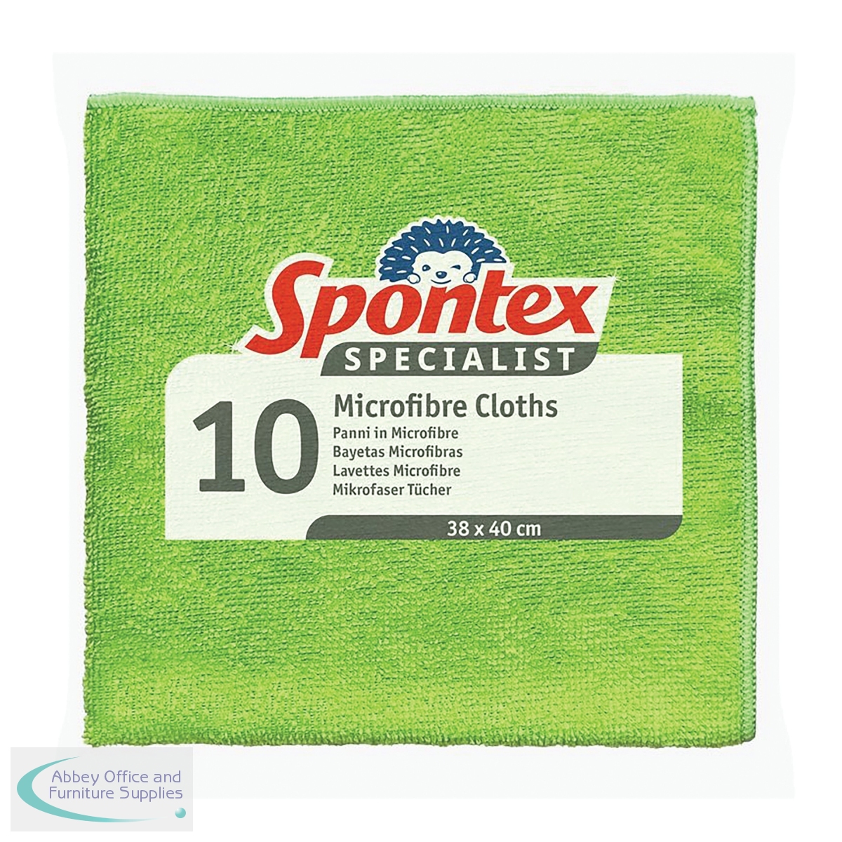 SPX15317 - Spontex Specialist Microfibre Cloths Green (Pack of 10) 19700240