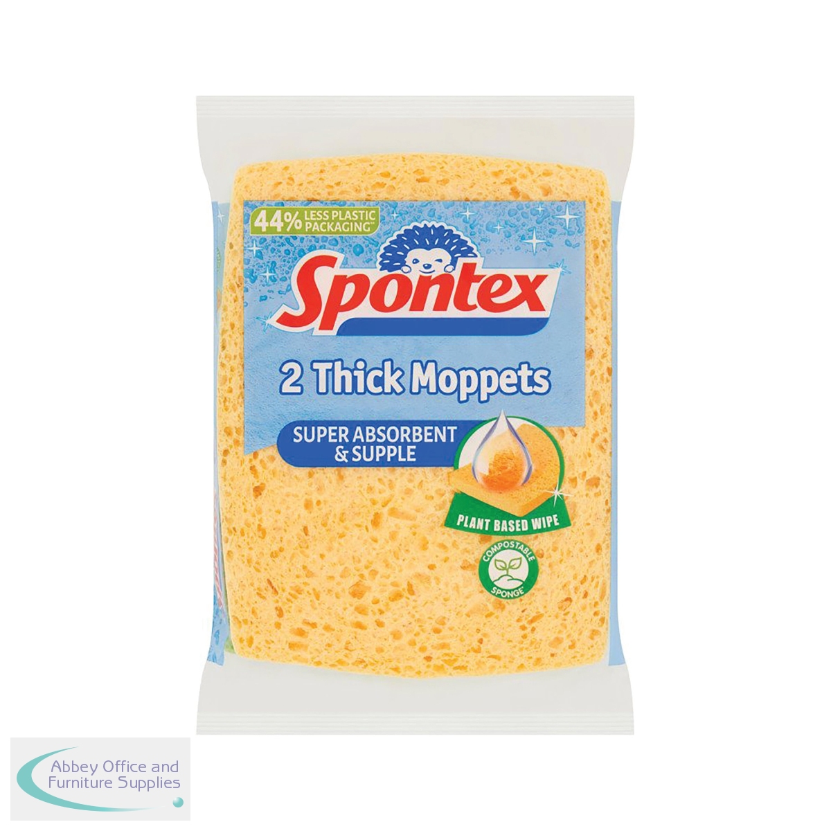 Made using natural biodegradable cellulose sponge, Spontex Thick Moppets are perfect for mopping up spills and wiping down surfaces. Wipe size: 160 x 120mm. Pack of 2.