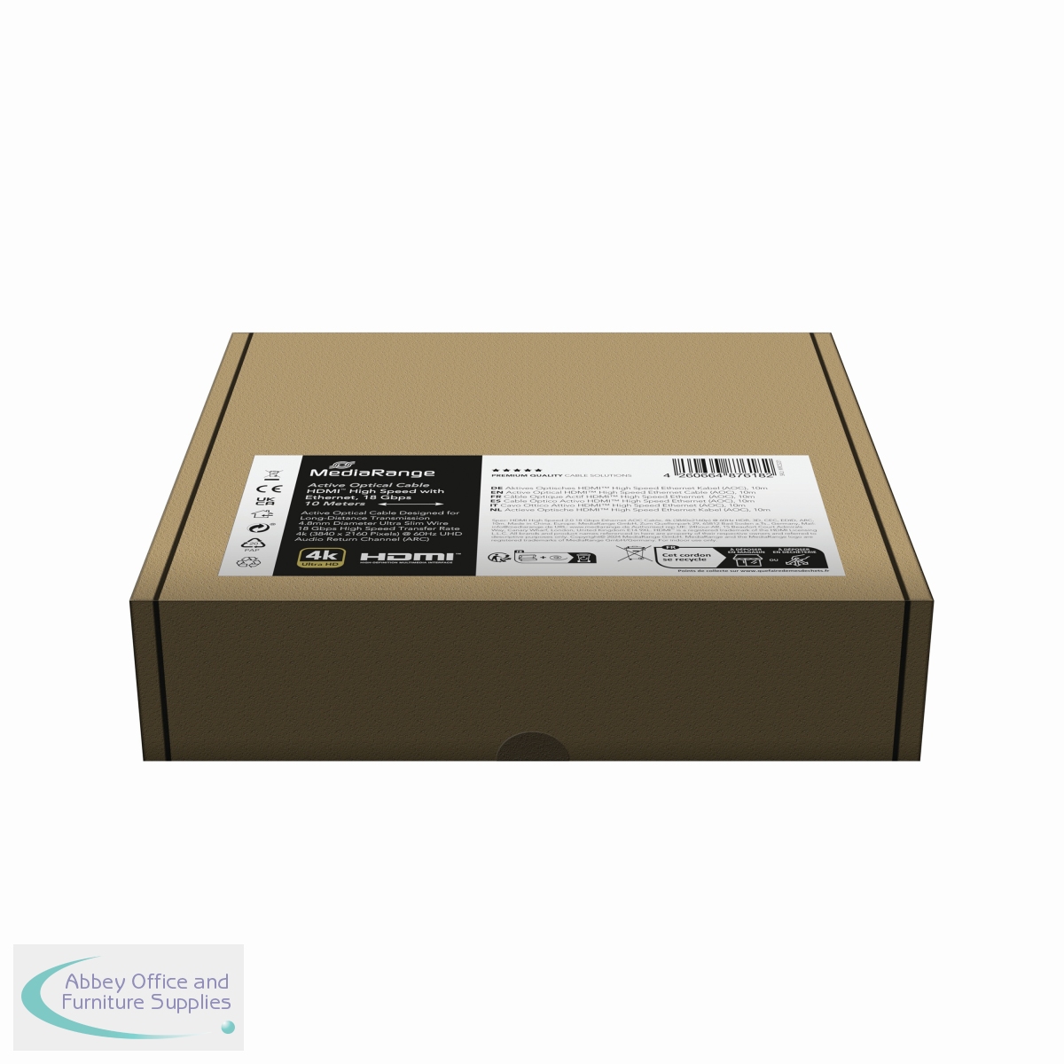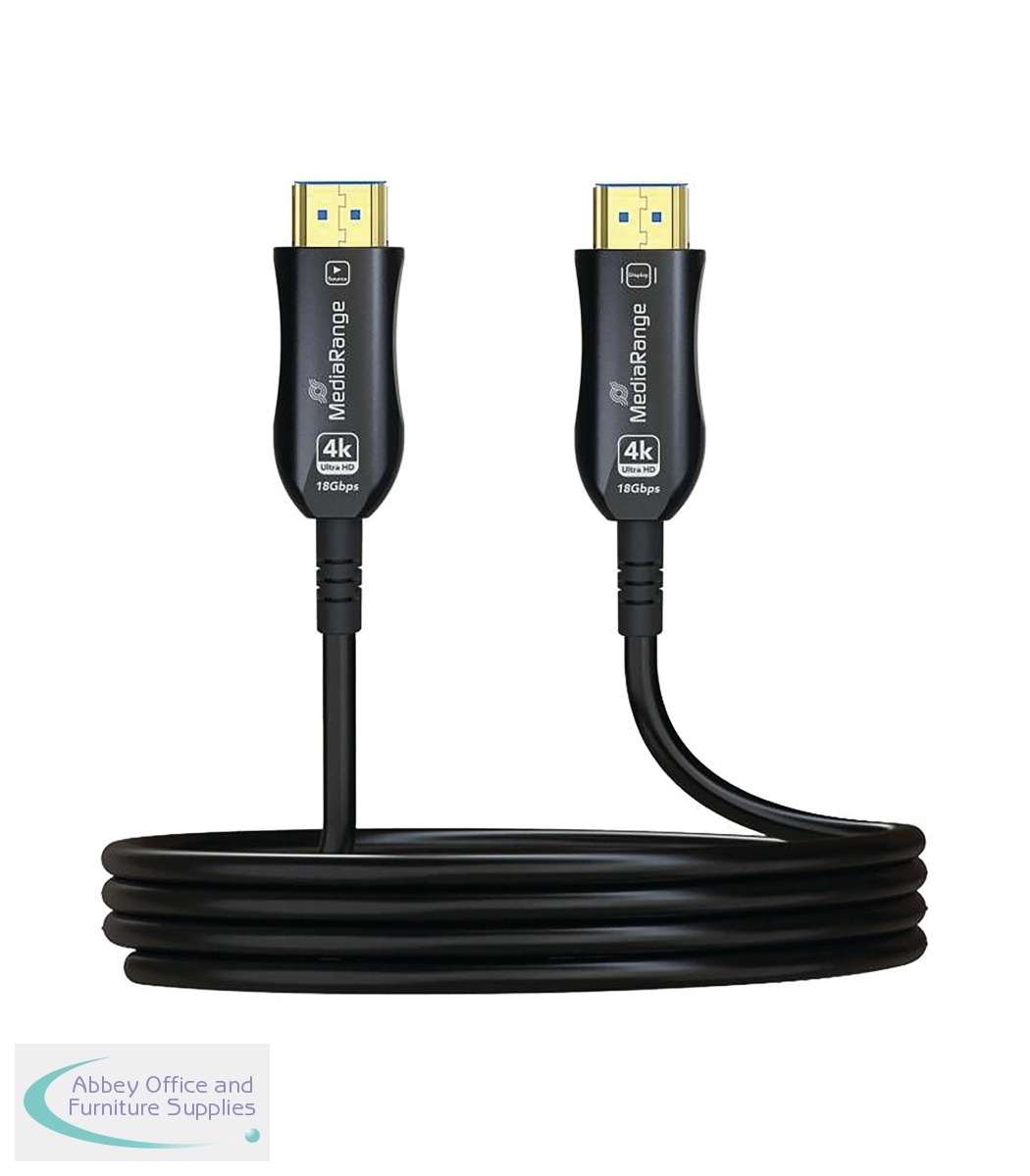 MediaRange Active Optical HDMI High Speed Ethernet Cables are engineered to deliver stunning visuals and seamless connectivity for your audio-visual experience, whether for entertainment, gaming, or professional presentations. Our wide range of dependable high quality cables guarantees a reliable and efficient connectivity solution for various applications. With data transfer rate of up to 18 Gbps, this cable is designed to meet the demands of modern digital devices.