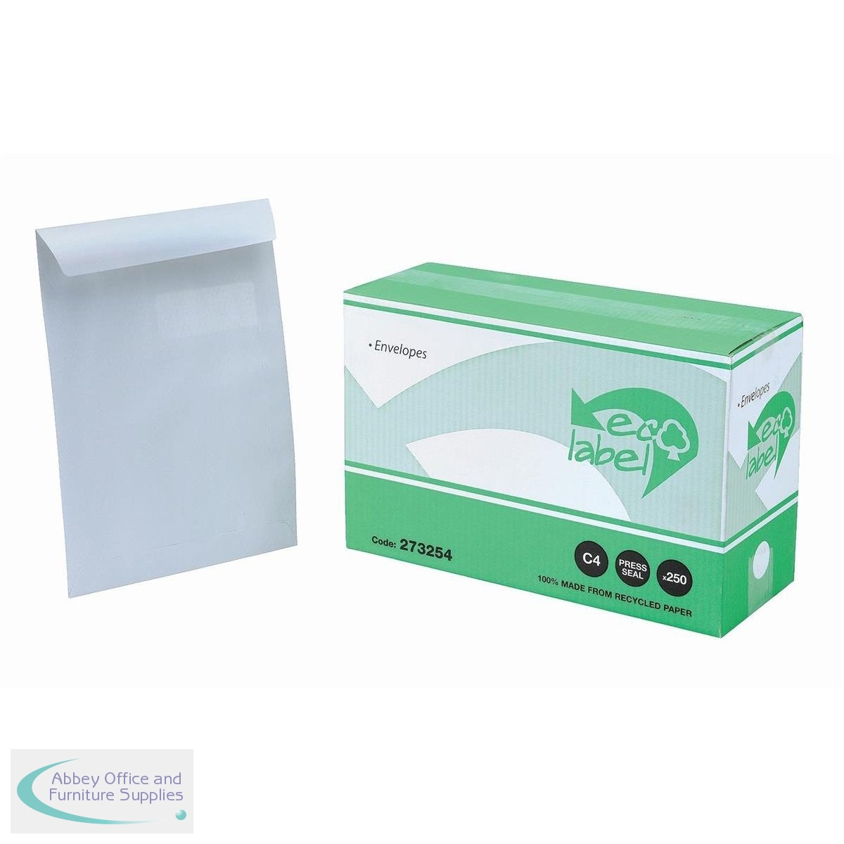 5 Star white C4 envelopes. These envelopes are made from 100% recycled lightweight 90gsm paper. They also feature a window, allowing you to clearly display the address of your correspondent. This pack contains 250 envelopes.