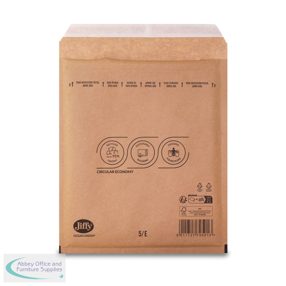 A high-performance mailer, with uncoated paper and recycled content bubble, constructed with both environmental and sustainability without compromising performance. The construction of the mailer, offers stiffness, tear resistance and impermeability for items in shipment. The Jiffy Ocean Green mailer is an ideal choice for the shipment of a wide range of goods/industries: Ecommerce, Electronics, Fulfilment, Health and Beauty, Pharmaceuticals, Jewellery and many more. The premium co-extruded recycled content bubble layer enables enhanced air retention and cushioning. Easily recycled, the inner bubble can be separated, reused or disposed of and the outer paper layer can go straight into the appropriate waste stream.